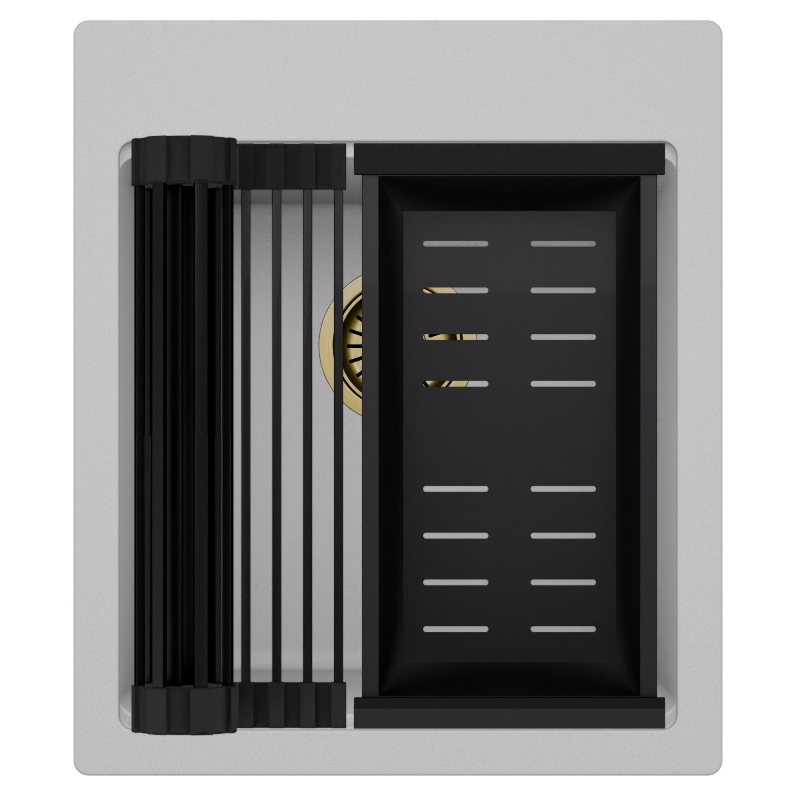 Termék mérete: 43x50 cm Szekrényméreti igény: 45 cm Medence mérete: 37x39x21,5 cm Medencék száma: Egymedencés Felhasználhatóság: Pultba építhető Könnyített fúratok száma: 3 Anyag: Gránit Anyagvastagság: 8-10 mm Tartozékok: Mosogatótálca, matt fekete csepegtetőrács és kosár, szifon - túlfolyóval és lefolyó takaróval Szifon szín: Szálcsiszolt arany Lefolyó takaró anyaga: Rozsdamentes acél HomeDepo SmartEdge Többfunkciós Peremrendszer