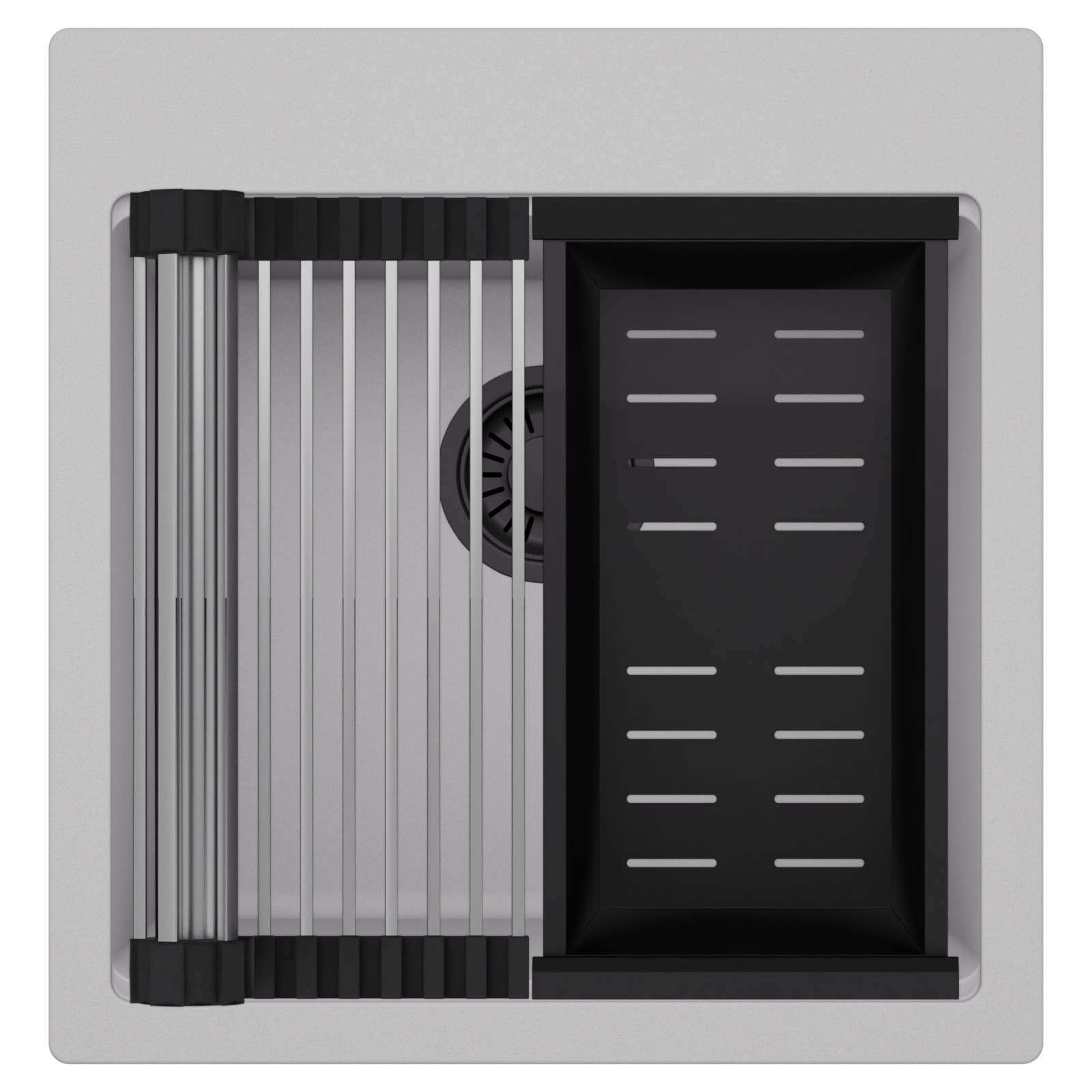 HD Infinity Grey 48 egymedencés mosogatótálca szett, csepegtetőráccsal és kosárral, alpesi szürke
