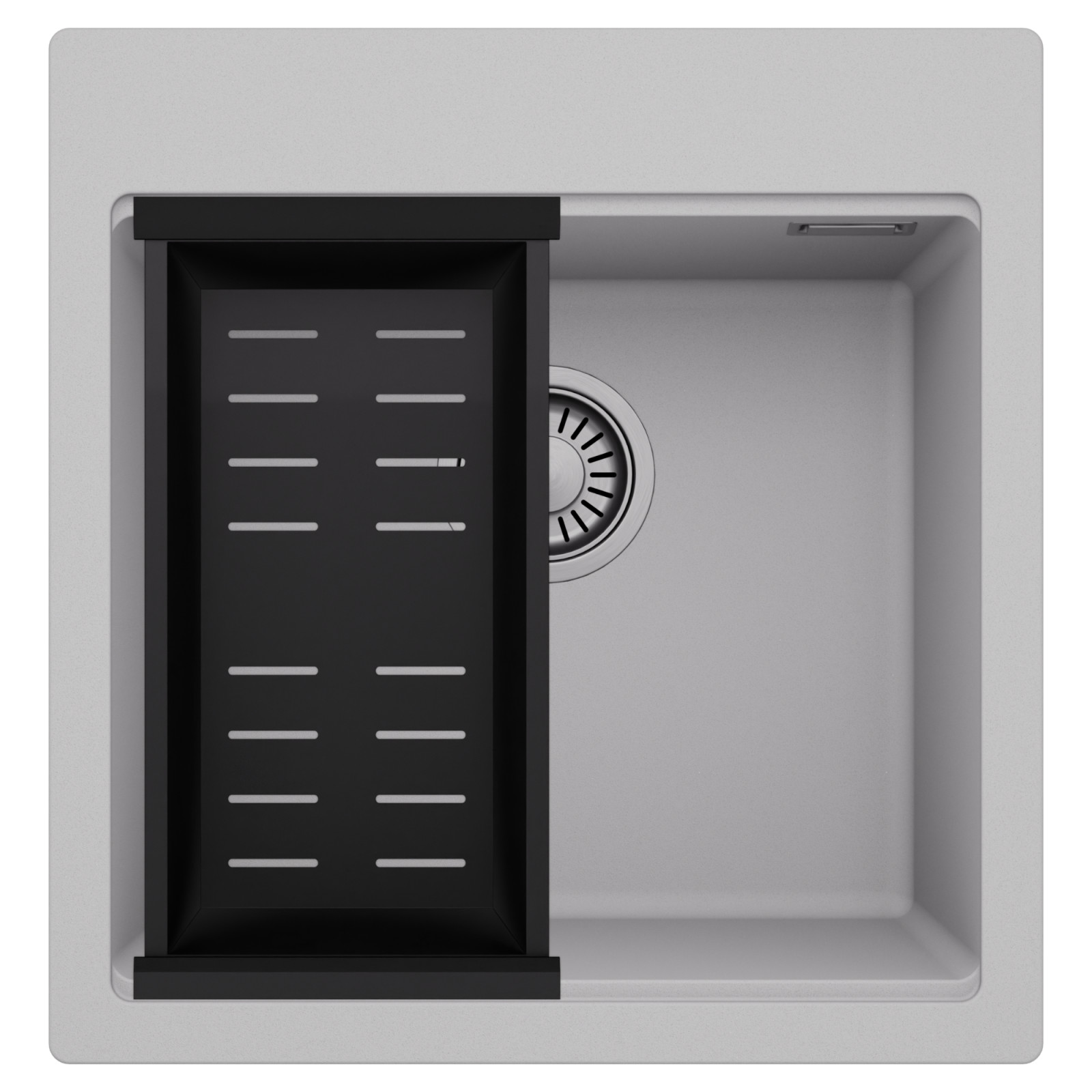 HD Infinity Grey 48 egymedencés mosogatótálca szett, csepegtetőkosárral, alpesi szürke