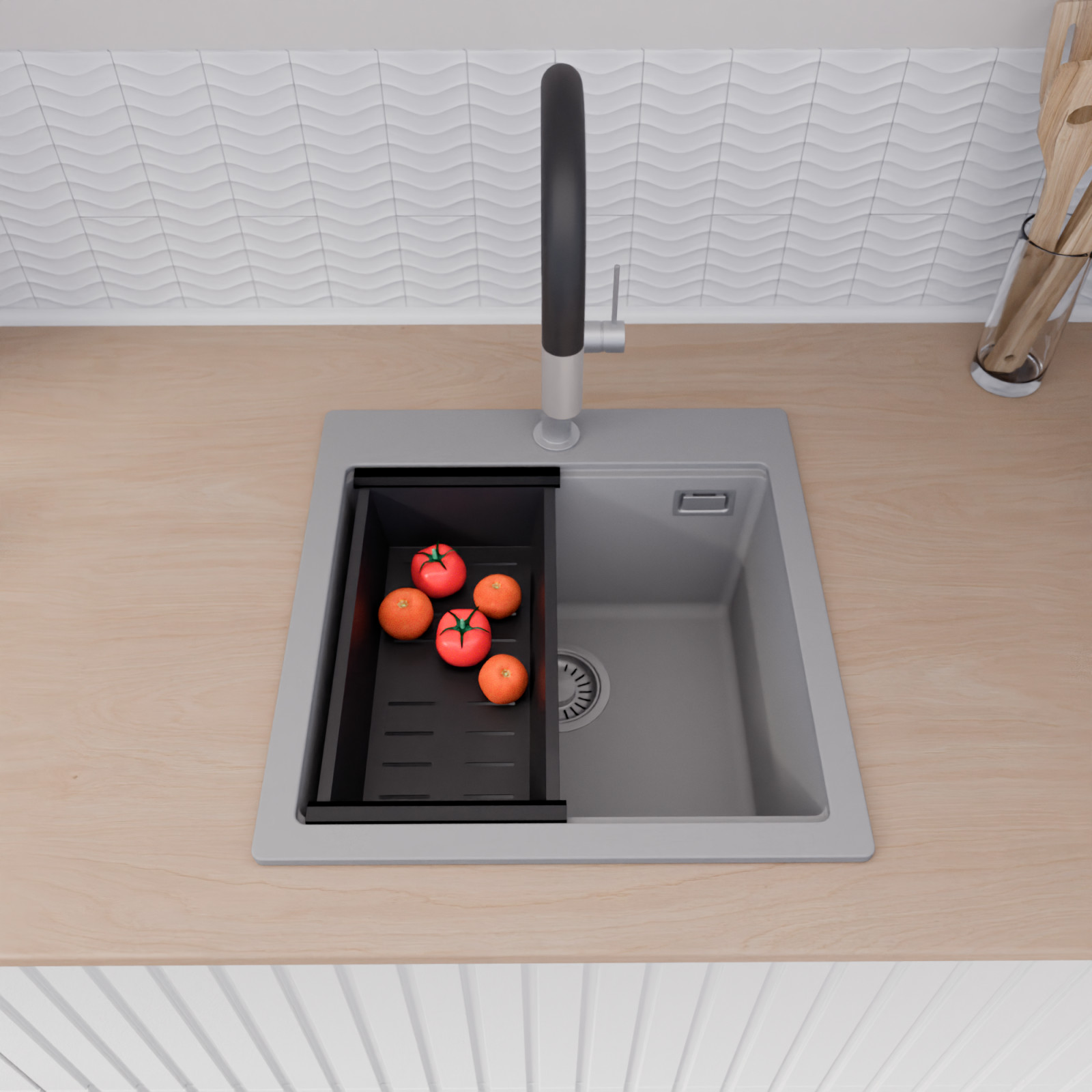 A mosogató prémium minőségű gránit kompozitból készült. Letisztult megjelenése mellett rendkívül praktikus, így bármilyen stílusú konyhába harmonikusan illeszkedik. A strapabíró gránit anyag hosszú távon is megbízható használatot garantál.