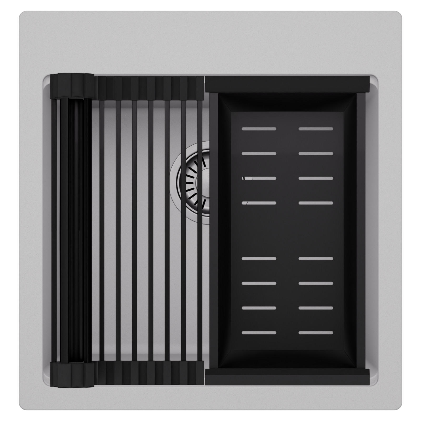 HD Infinity Grey 48 egymedencés mosogatótálca szett, csepegtetőráccsal és kosárral, alpesi szürke