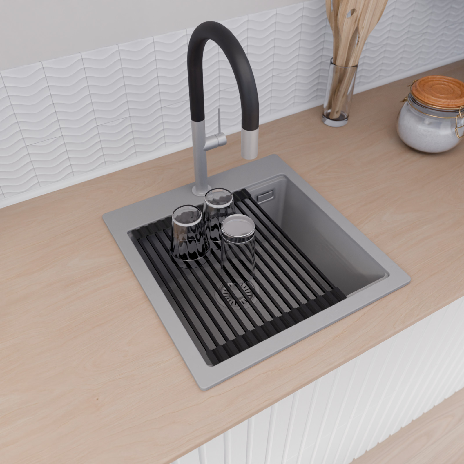 A mosogató prémium minőségű gránit kompozitból készült. Letisztult megjelenése mellett rendkívül praktikus, így bármilyen stílusú konyhába harmonikusan illeszkedik. A strapabíró gránit anyag hosszú távon is megbízható használatot garantál.