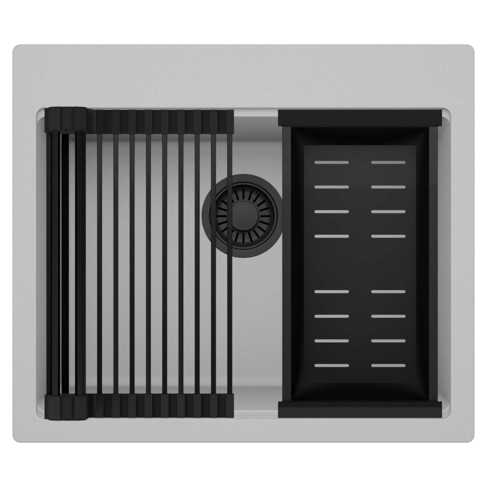 HD Infinity Grey 58 egymedencés mosogatótálca szett, csepegtetőráccsal és kosárral, alpesi szürke