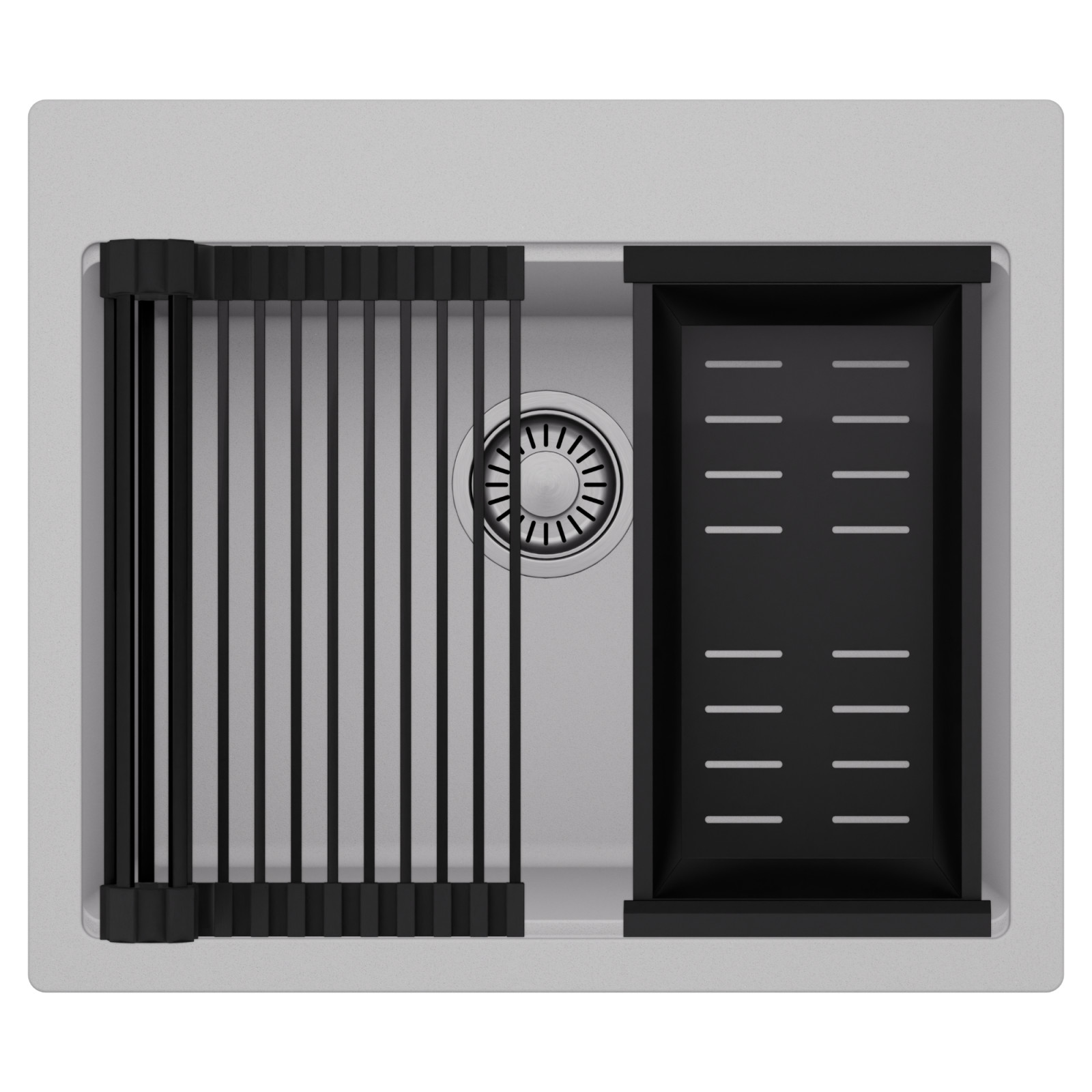HD Infinity Grey 58 egymedencés mosogatótálca szett, csepegtetőráccsal és kosárral, alpesi szürke