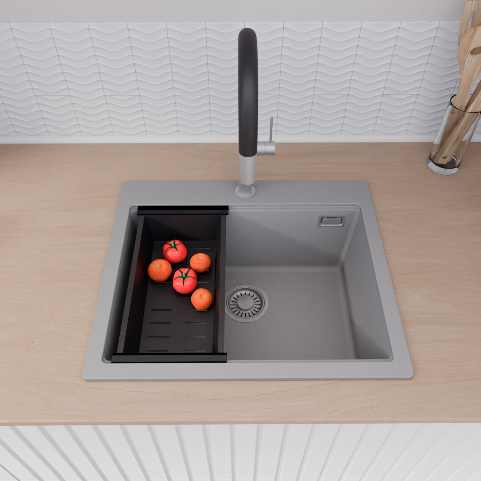 A mosogató prémium minőségű gránit kompozitból készült. Letisztult megjelenése mellett rendkívül praktikus, így bármilyen stílusú konyhába harmonikusan illeszkedik. A strapabíró gránit anyag hosszú távon is megbízható használatot garantál.
