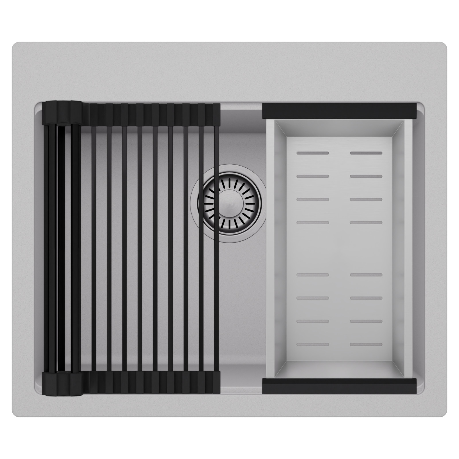 A HomeDepo SmartEdge Többfunkciós Peremrendszer egy intelligensen kialakított peremmegoldás, amely a mosogatót kompakt, mégis teljes értékű konyhai térré alakítja a mindennapok során. A speciális peremkialakítás lehetővé teszi a vágódeszka, a feltekerhető csepegtető rács, a gyümölcsmosó és a csepegtető kosár stabil, biztonságos és kényelmes elhelyezését közvetlenül a mosogató speciális belső peremén. A kiegészítők síkban csúsztathatók és szabadon kombinálhatók, így extra munkafelületet nyersz anélkül, hogy helyet foglalnál a konyhapulton – a mosogató valódi többfunkciós központtá válik.