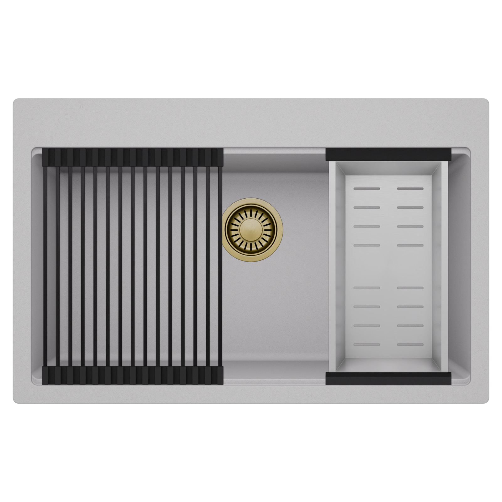 HD Infinity Grey 78 egymedencés mosogatótálca szett, csepegtetőráccsal és kosárral, alpesi szürke
