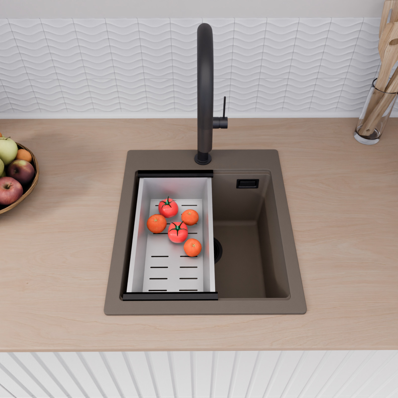 HD Infinity Tortora 43 egymedencés mosogatótálca szett, csepegtetőkosárral, tortora