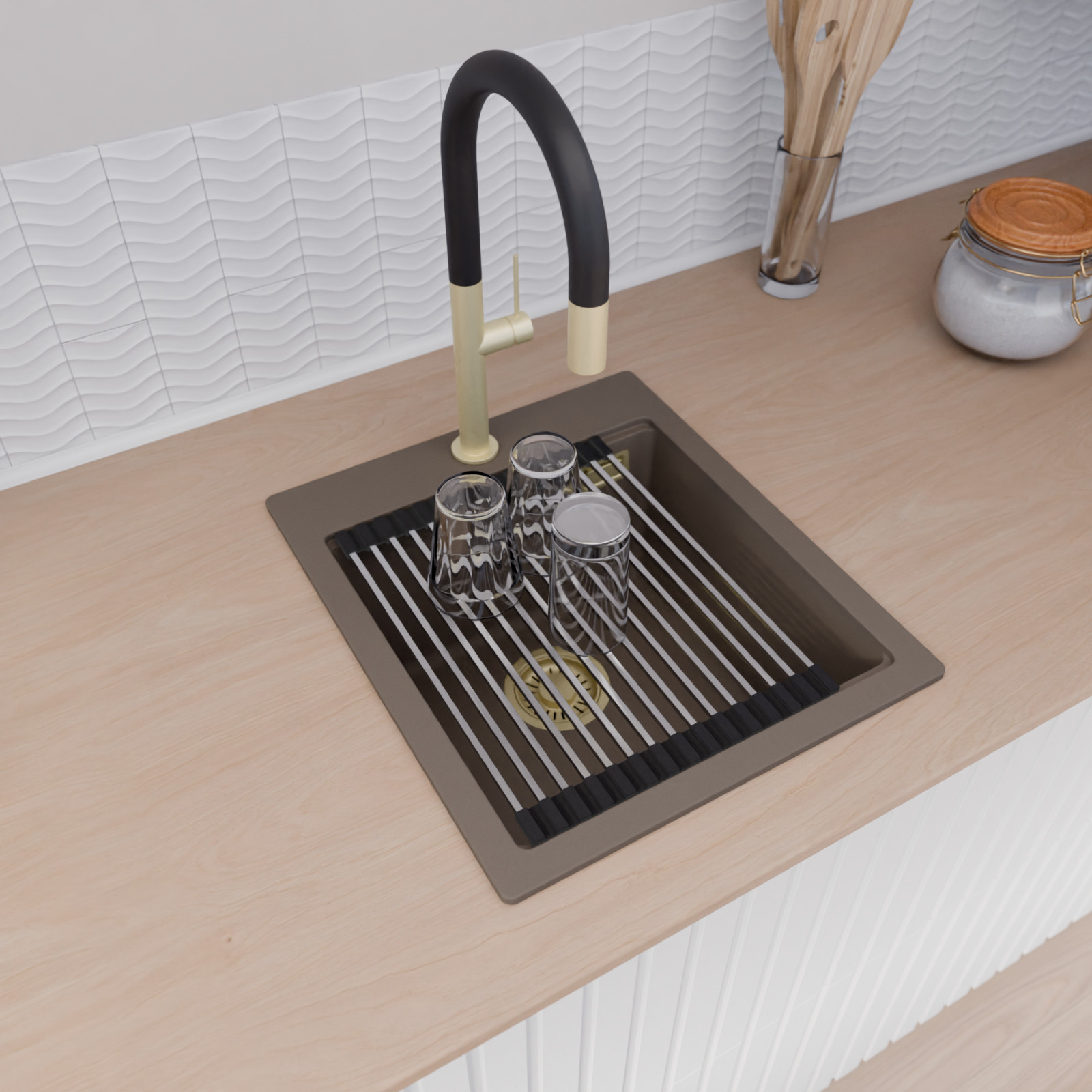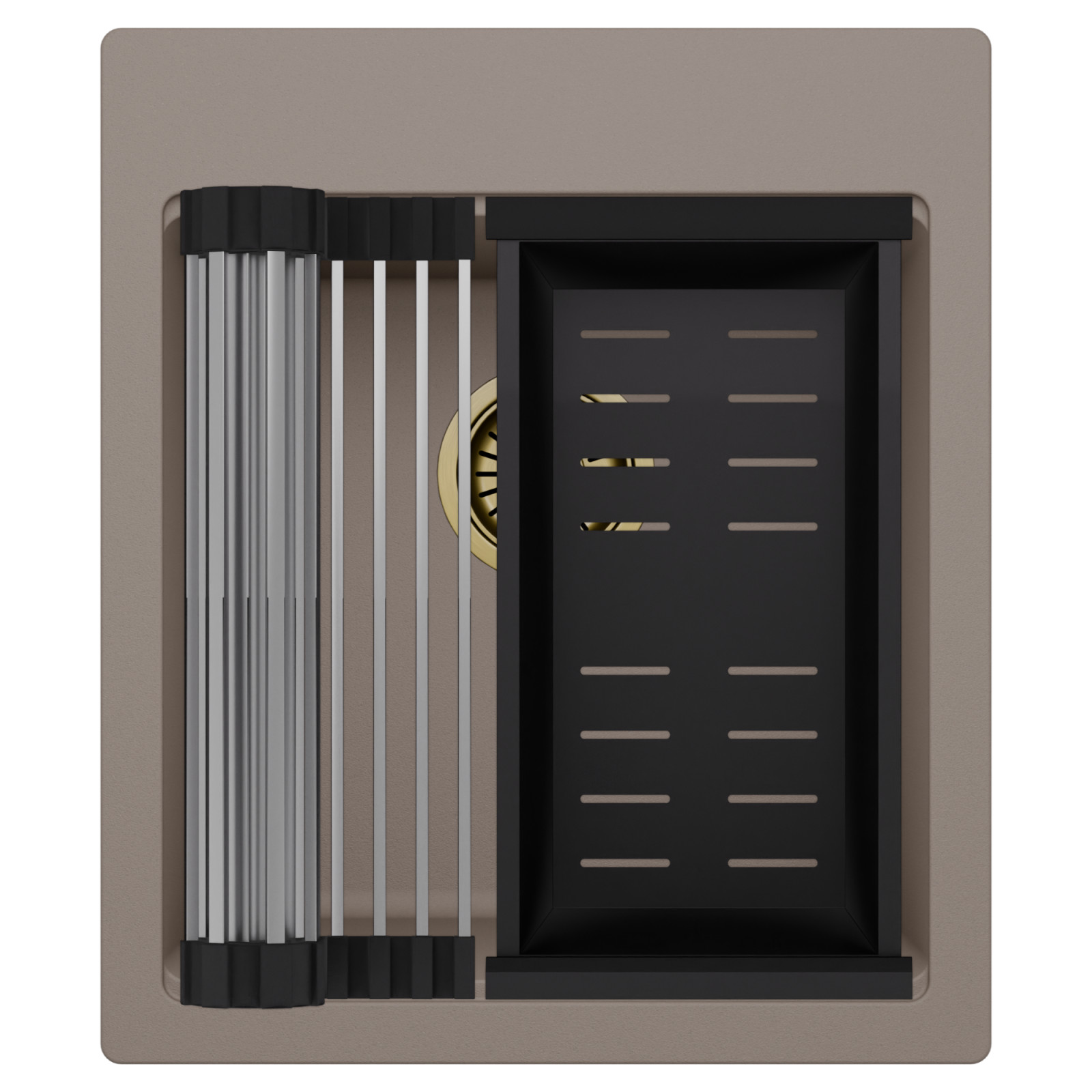 HD Infinity Tortora 43 egymedencés mosogatótálca szett, csepegtetőráccsal és kosárral, tortora