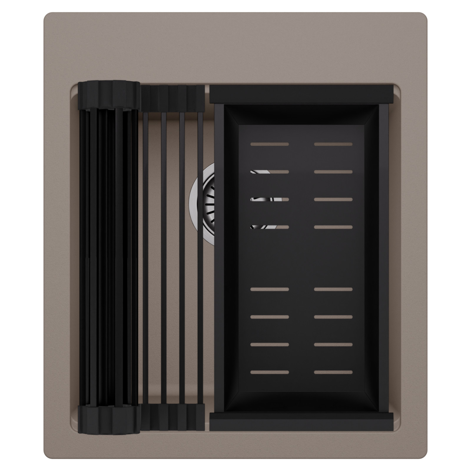 HD Infinity Tortora 43 egymedencés mosogatótálca szett, csepegtetőráccsal és kosárral, tortora