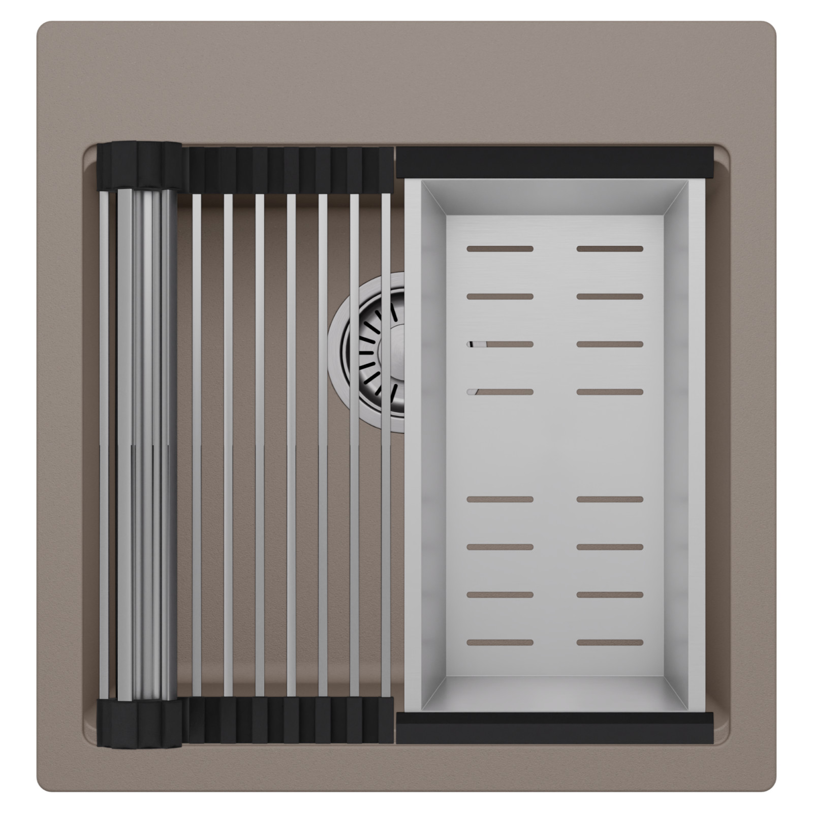 HD Infinity Tortora 48 egymedencés mosogatótálca szett, csepegtetőráccsal és kosárral, tortora