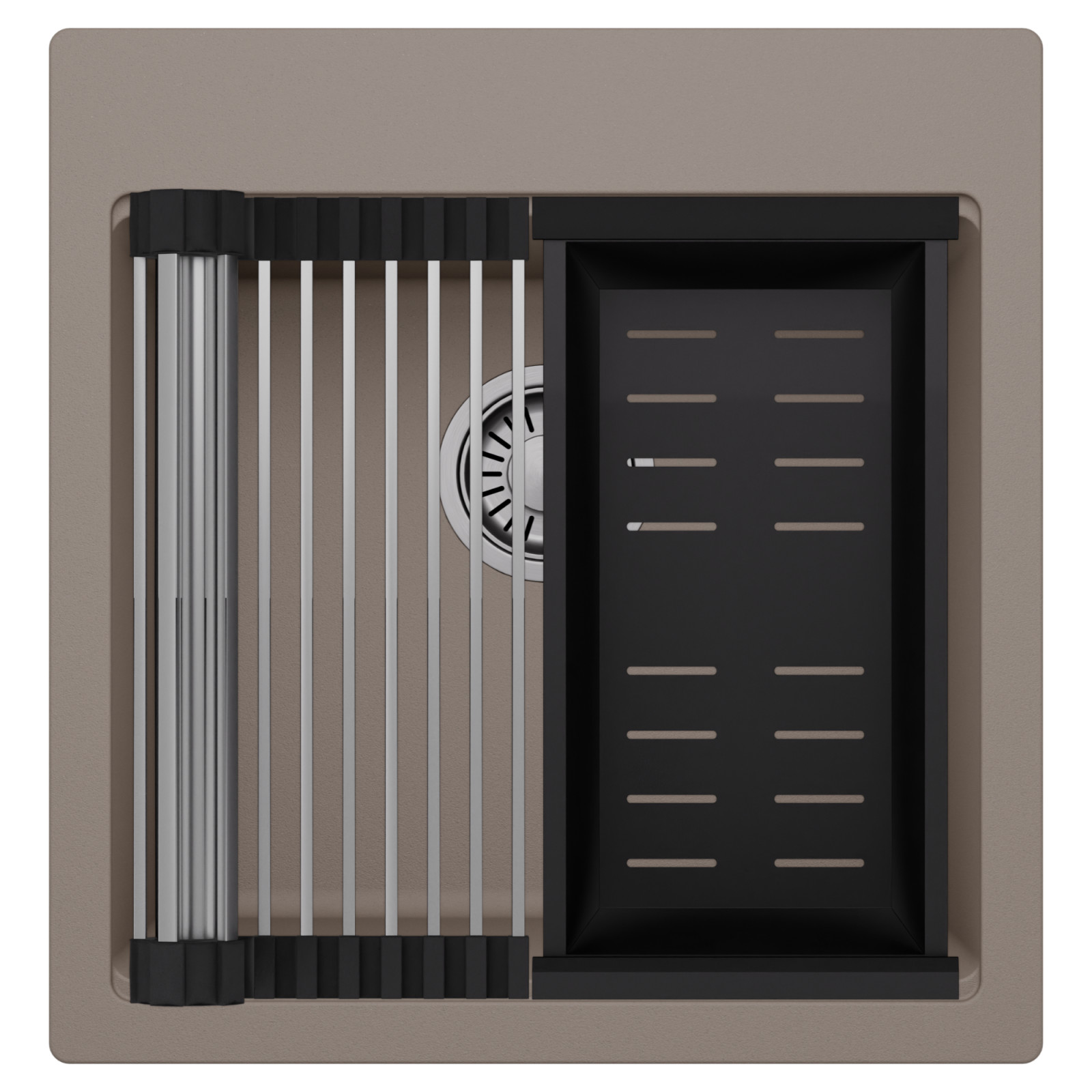 HD Infinity Tortora 48 egymedencés mosogatótálca szett, csepegtetőráccsal és kosárral, tortora