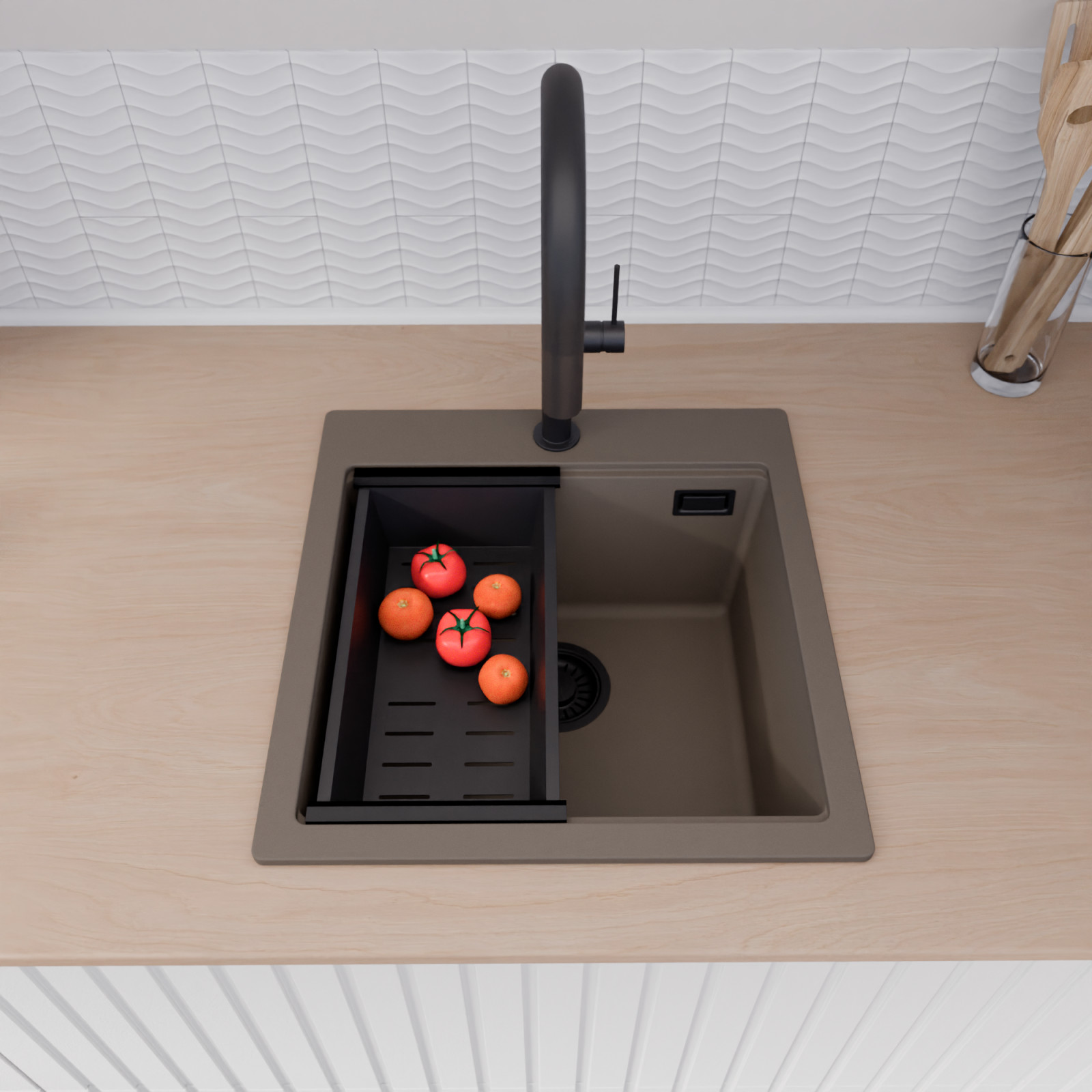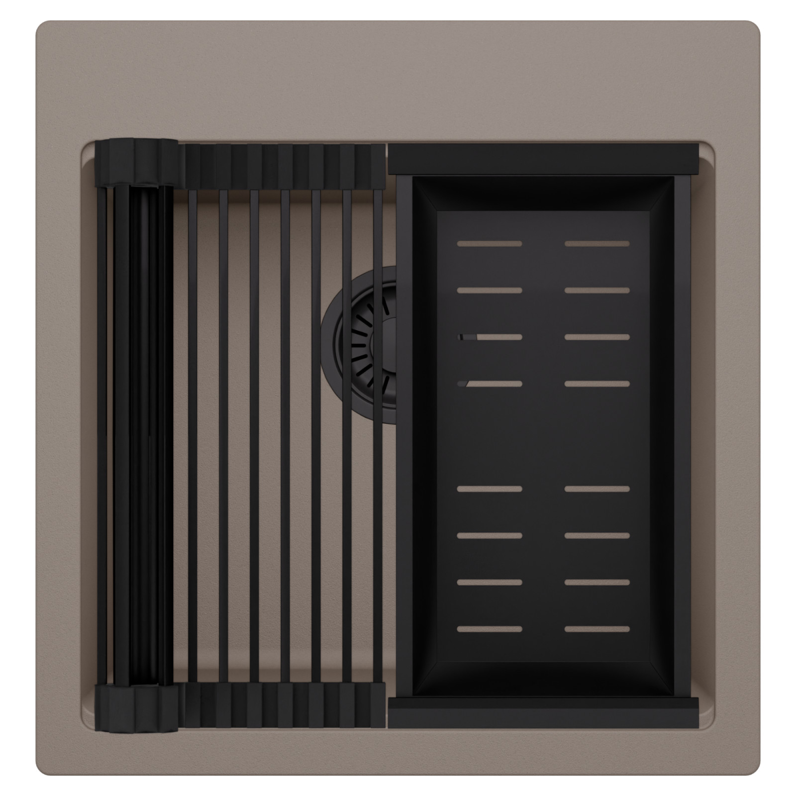 HD Infinity Tortora 48 egymedencés mosogatótálca szett, csepegtetőráccsal és kosárral, tortora