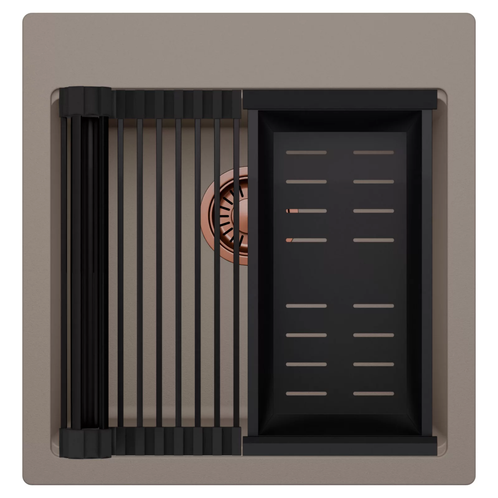 HD Infinity Tortora 48 egymedencés mosogatótálca szett, csepegtetőráccsal és kosárral, tortora