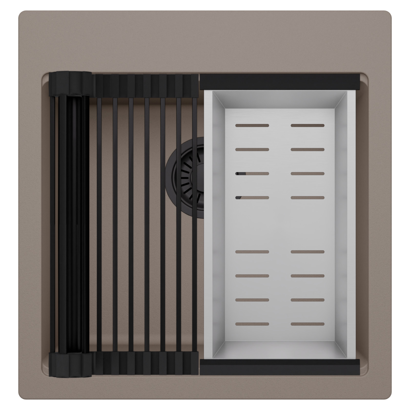 HD Infinity Tortora 48 egymedencés mosogatótálca szett, csepegtetőráccsal és kosárral, tortora
