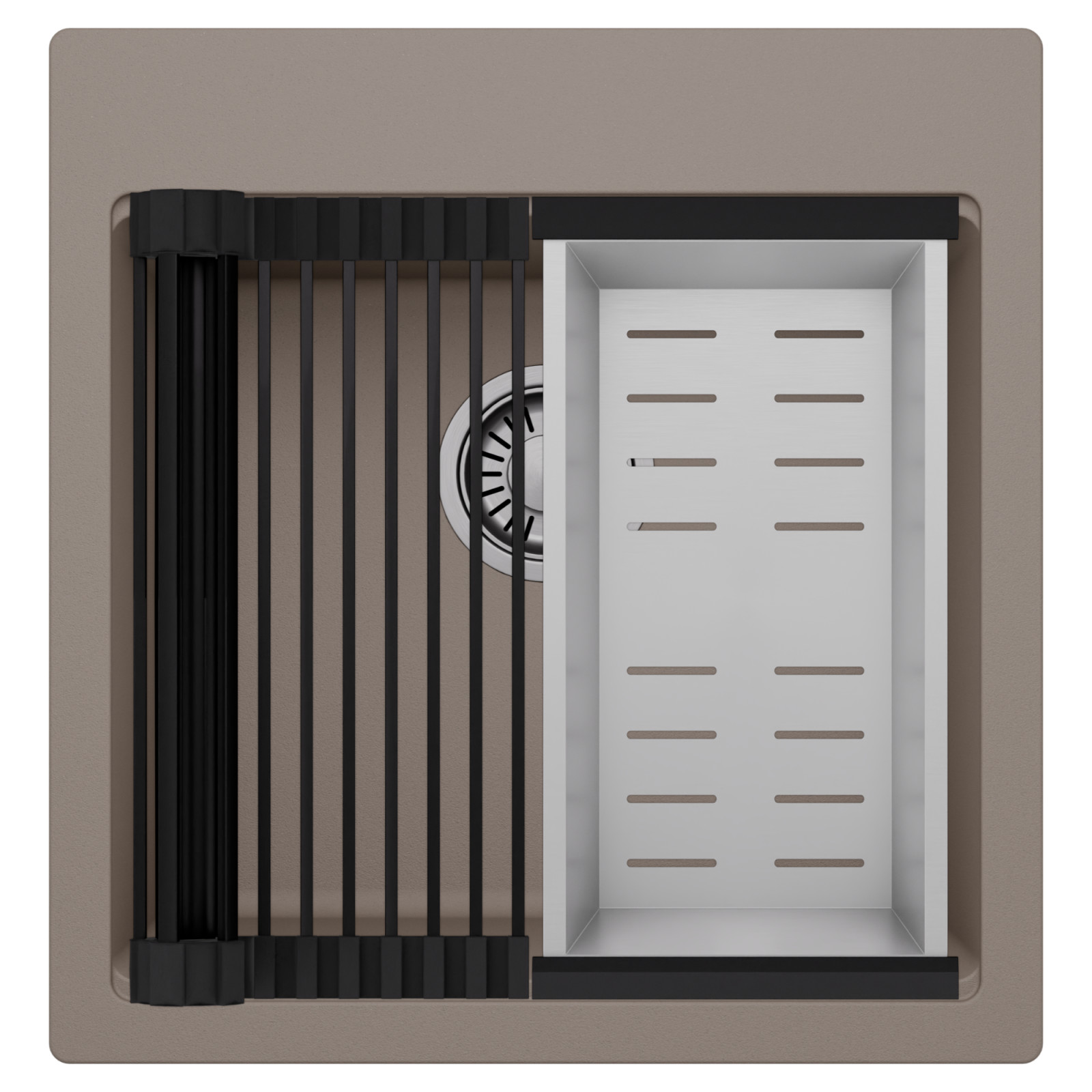 HD Infinity Tortora 48 egymedencés mosogatótálca szett, csepegtetőráccsal és kosárral, tortora