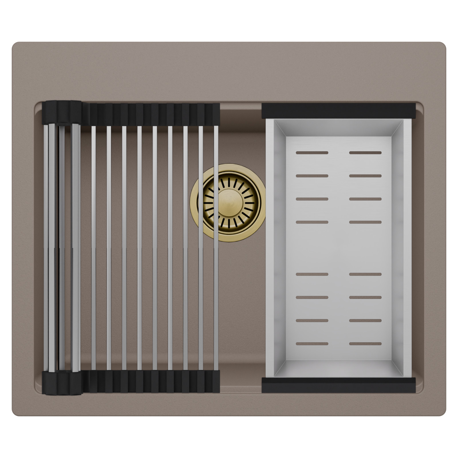 HD Infinity Tortora 58 egymedencés mosogatótálca szett, csepegtetőráccsal és kosárral, tortora