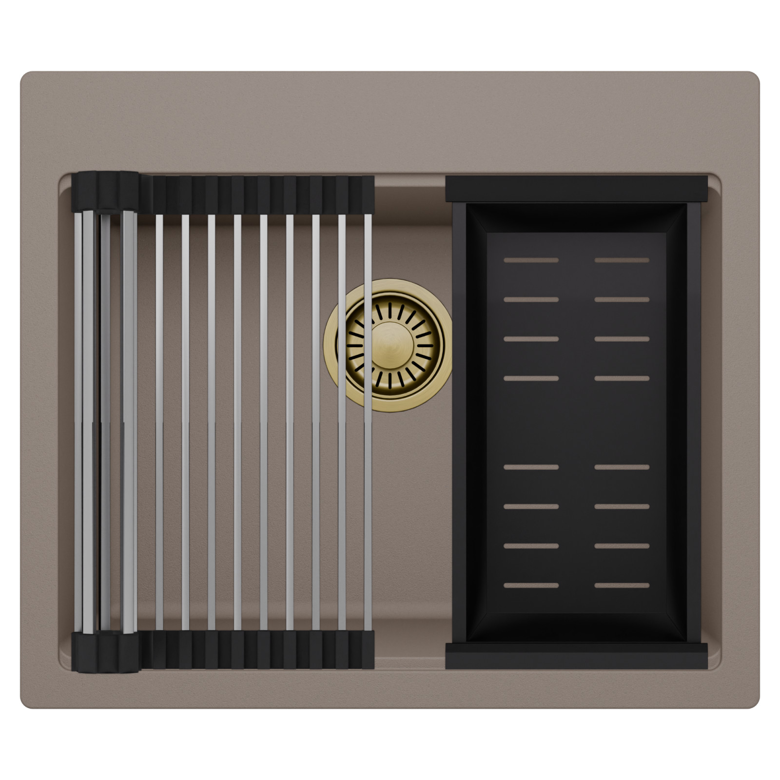 HD Infinity Tortora 58 egymedencés mosogatótálca szett, csepegtetőráccsal és kosárral, tortora