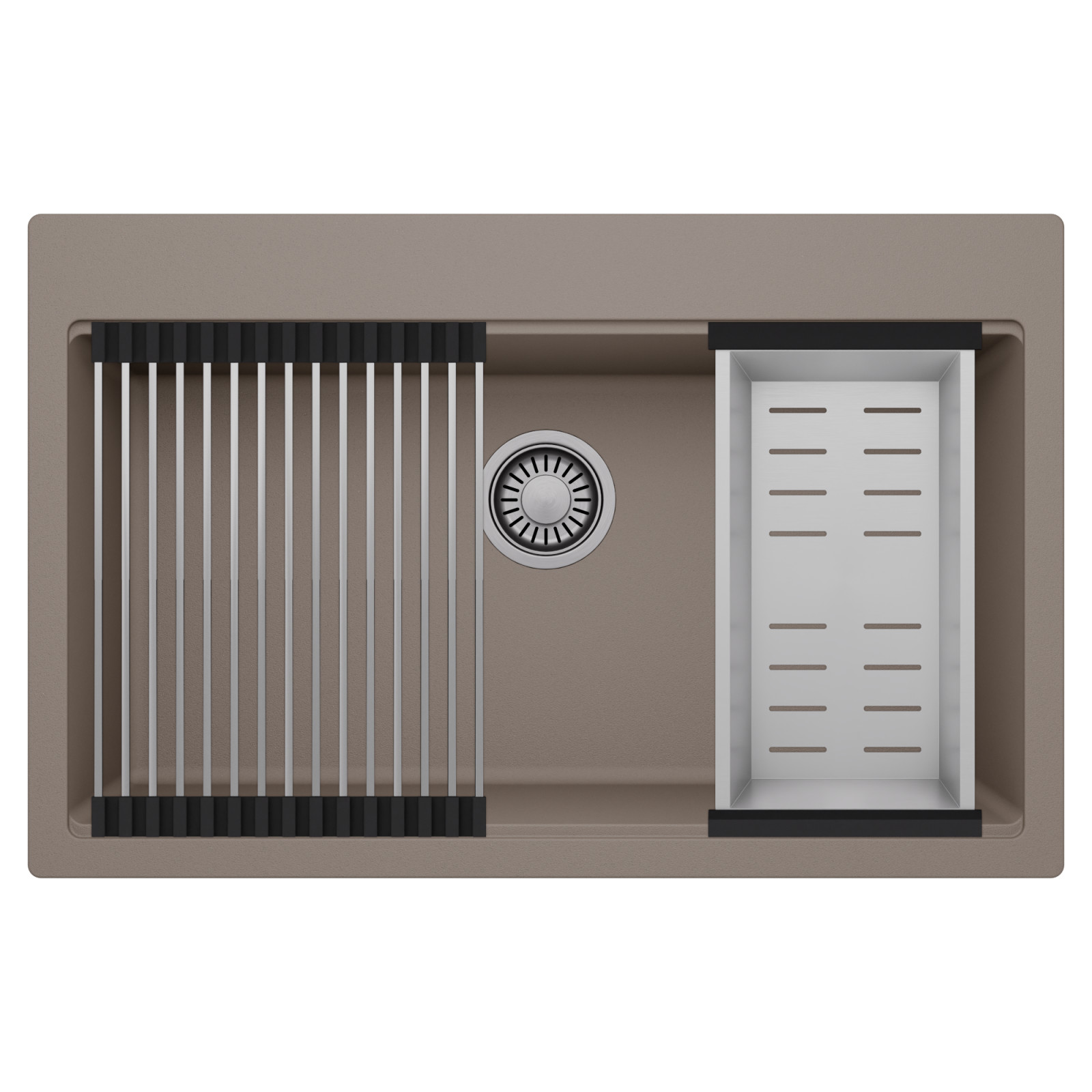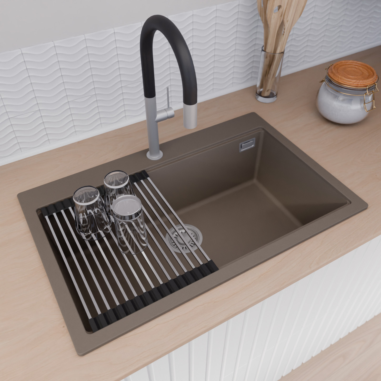 HD Infinity Tortora 78 egymedencés mosogatótálca szett, csepegtetőráccsal és kosárral, tortora