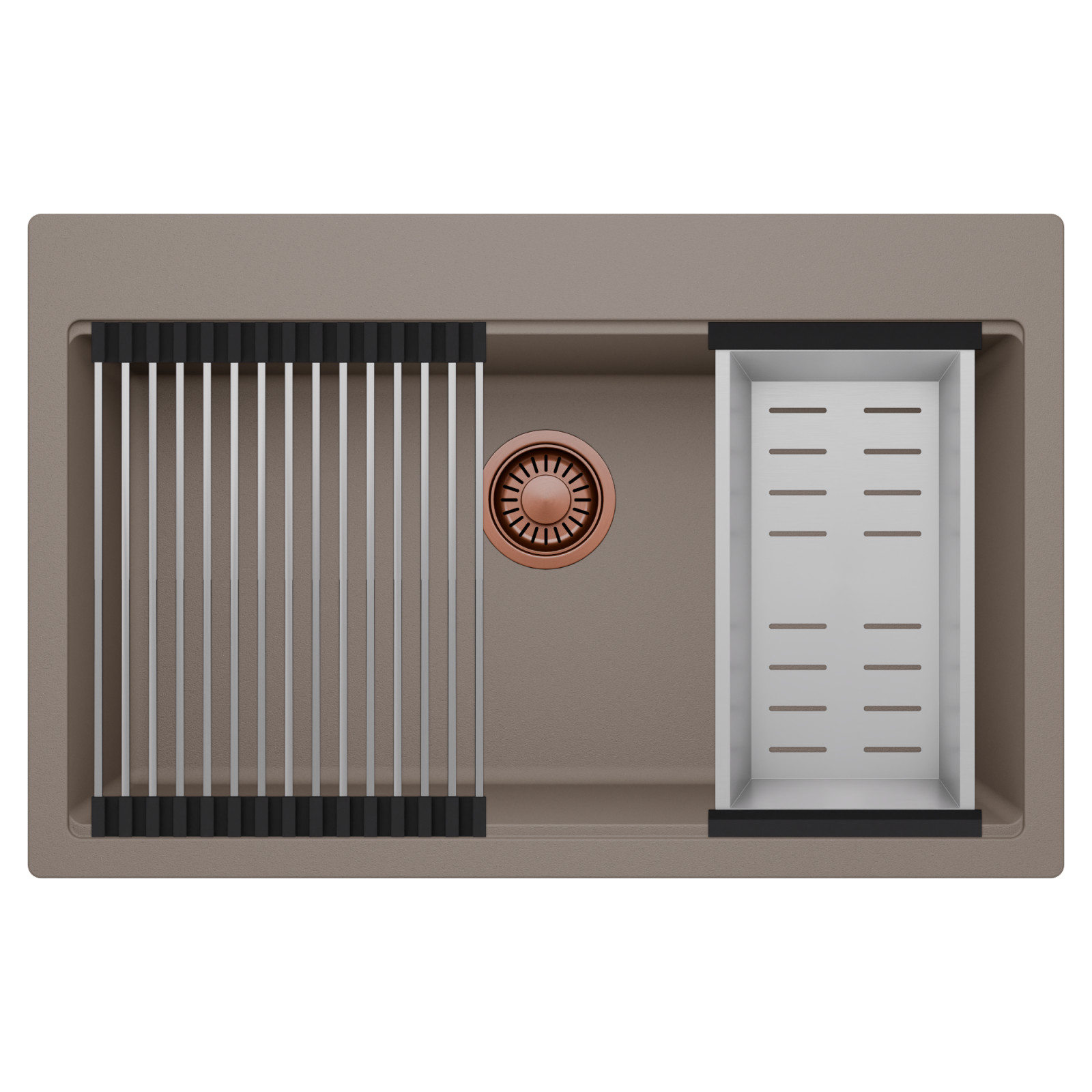HD Infinity Tortora 78 egymedencés mosogatótálca szett, csepegtetőráccsal és kosárral, tortora