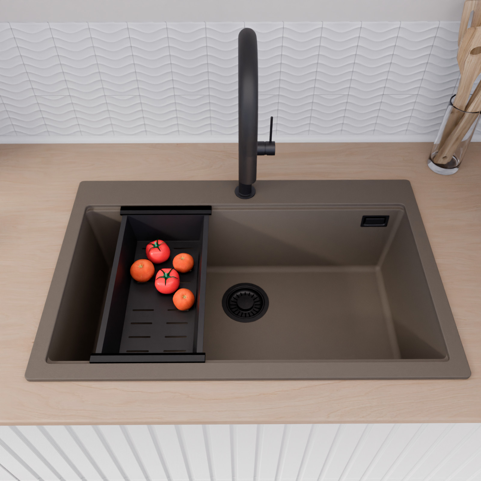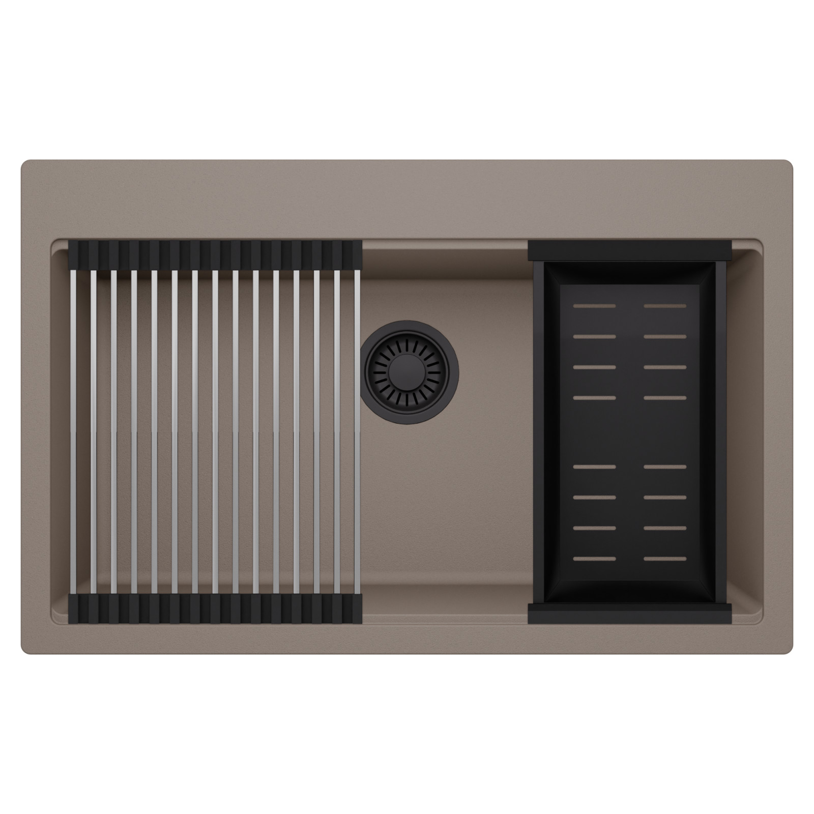 HD Infinity Tortora 78 egymedencés mosogatótálca szett, csepegtetőráccsal és kosárral, tortora