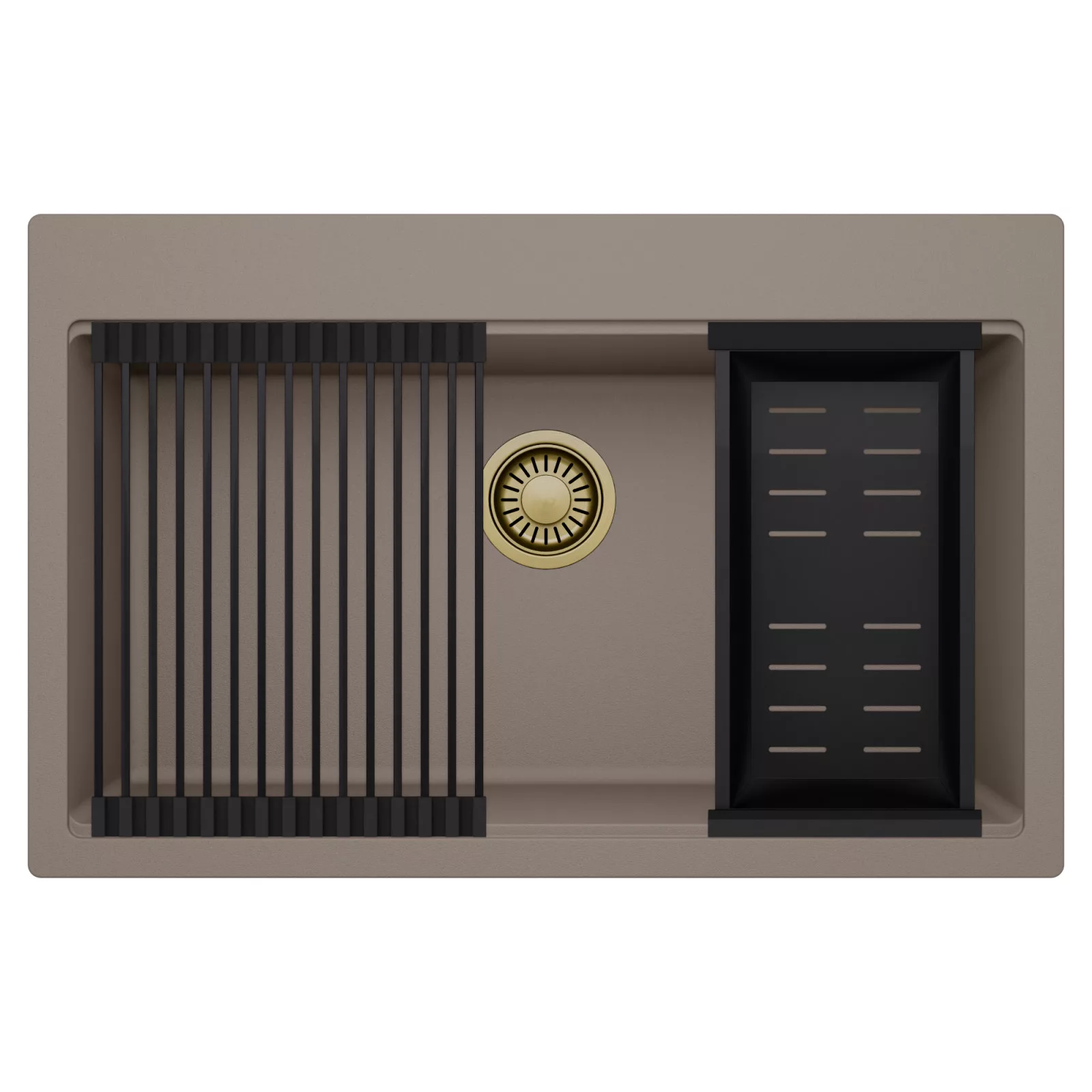 HD Infinity Tortora 78 egymedencés mosogatótálca szett, csepegtetőráccsal és kosárral, tortora