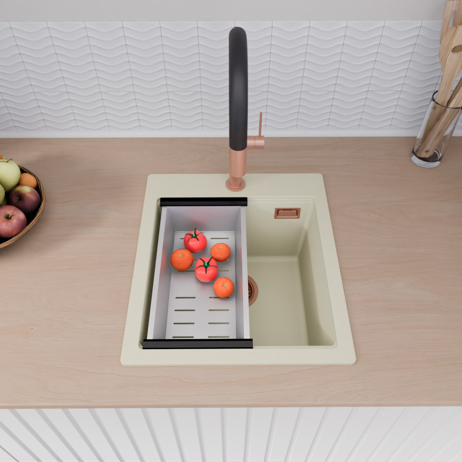 A HomeDepo SmartEdge Többfunkciós Peremrendszer egy intelligensen kialakított peremmegoldás, amely a mosogatót kompakt, mégis teljes értékű konyhai térré alakítja a mindennapok során. A speciális peremkialakítás lehetővé teszi a vágódeszka, a feltekerhető csepegtető rács, a gyümölcsmosó és a csepegtető kosár stabil, biztonságos és kényelmes elhelyezését közvetlenül a mosogató speciális belső peremén. A kiegészítők síkban csúsztathatók és szabadon kombinálhatók, így extra munkafelületet nyersz anélkül, hogy helyet foglalnál a konyhapulton – a mosogató valódi többfunkciós központtá válik.