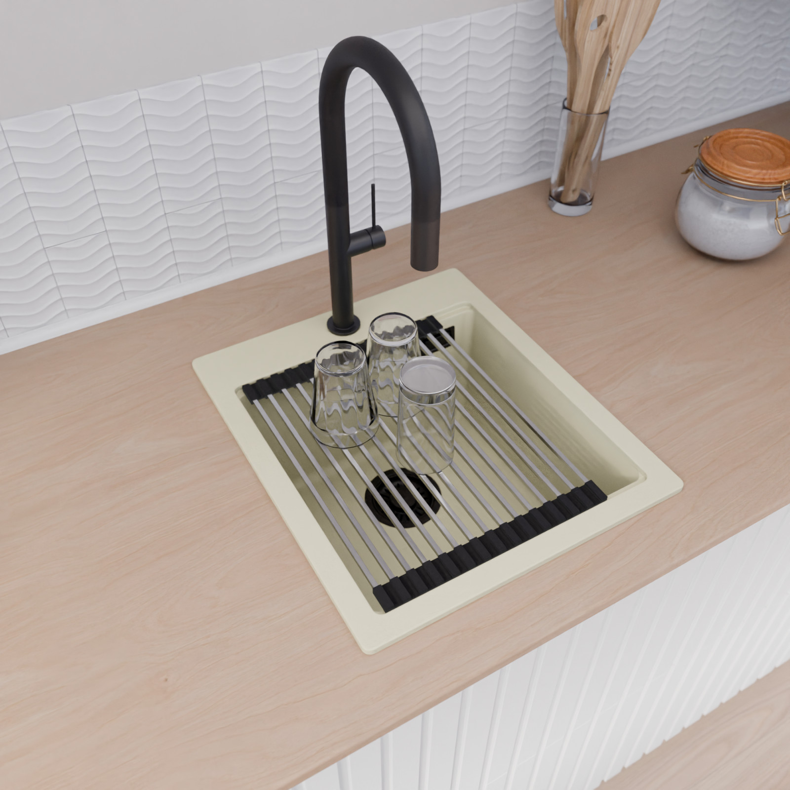 A mosogató prémium minőségű gránit kompozitból készült. Letisztult megjelenése mellett rendkívül praktikus, így bármilyen stílusú konyhába harmonikusan illeszkedik. A strapabíró gránit anyag hosszú távon is megbízható használatot garantál.