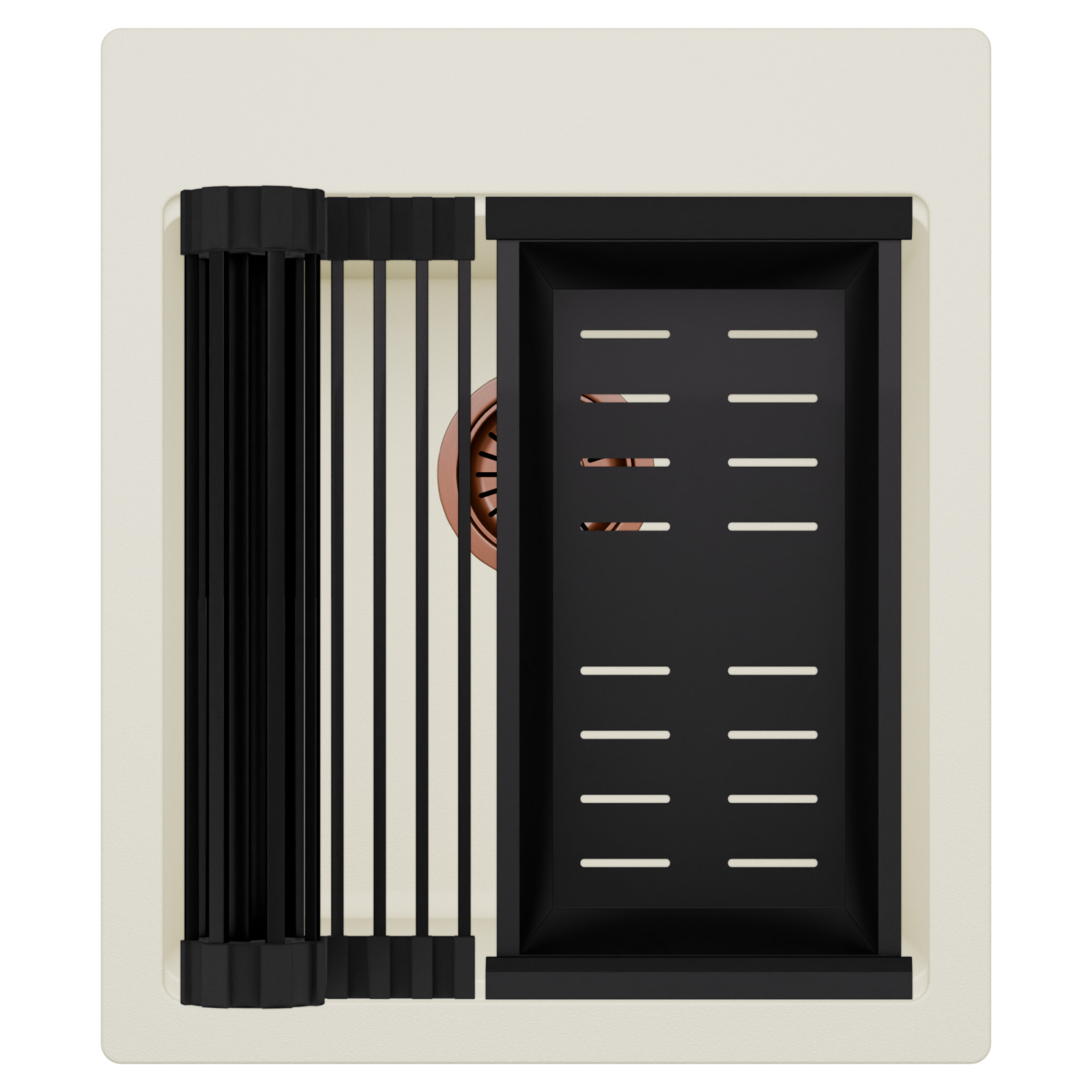 HD Infinity White 43 egymedencés mosogatótálca szett, csepegtetőráccsal és kosárral, tört fehér