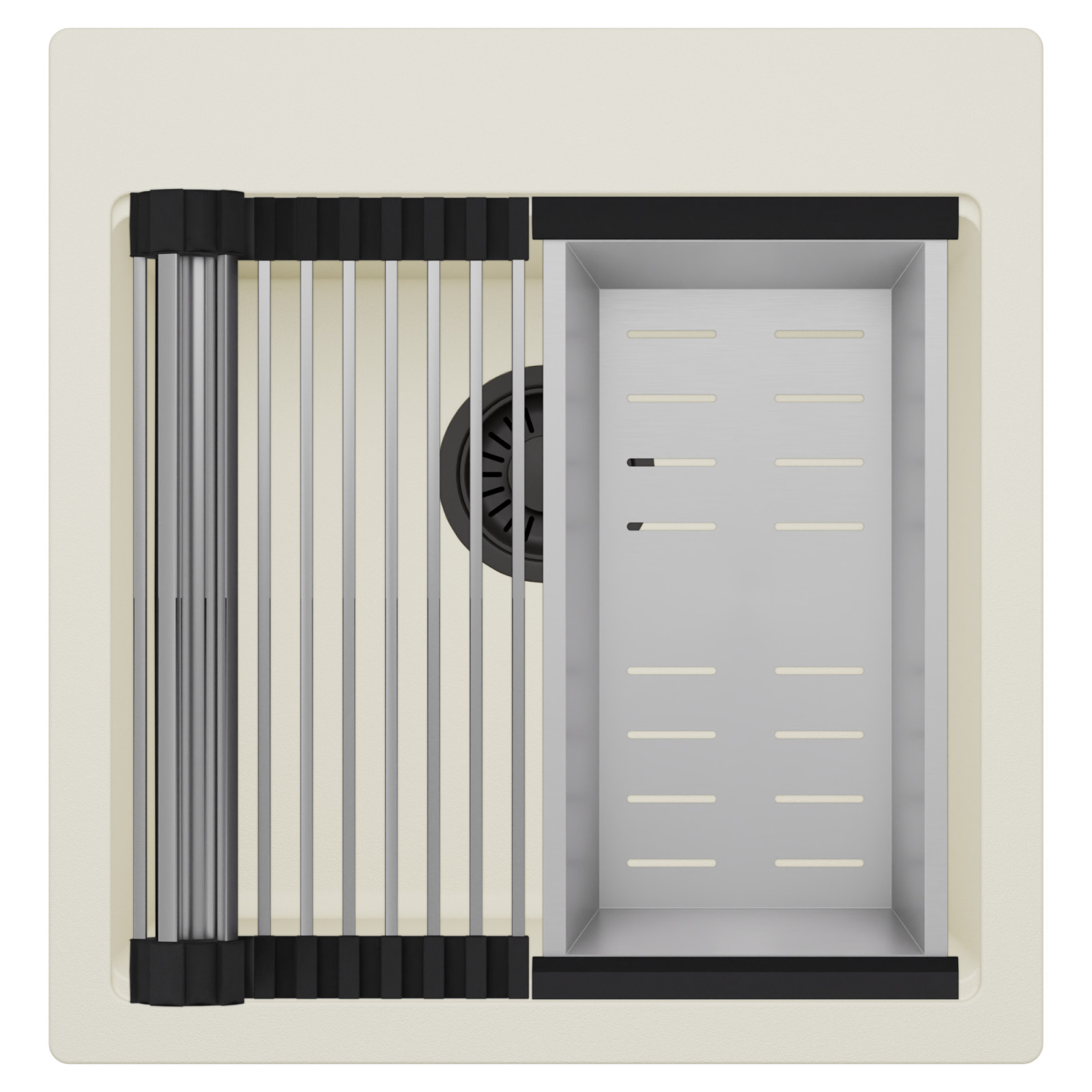 HD Infinity White 48 egymedencés mosogatótálca szett, csepegtetőráccsal és kosárral, tört fehér