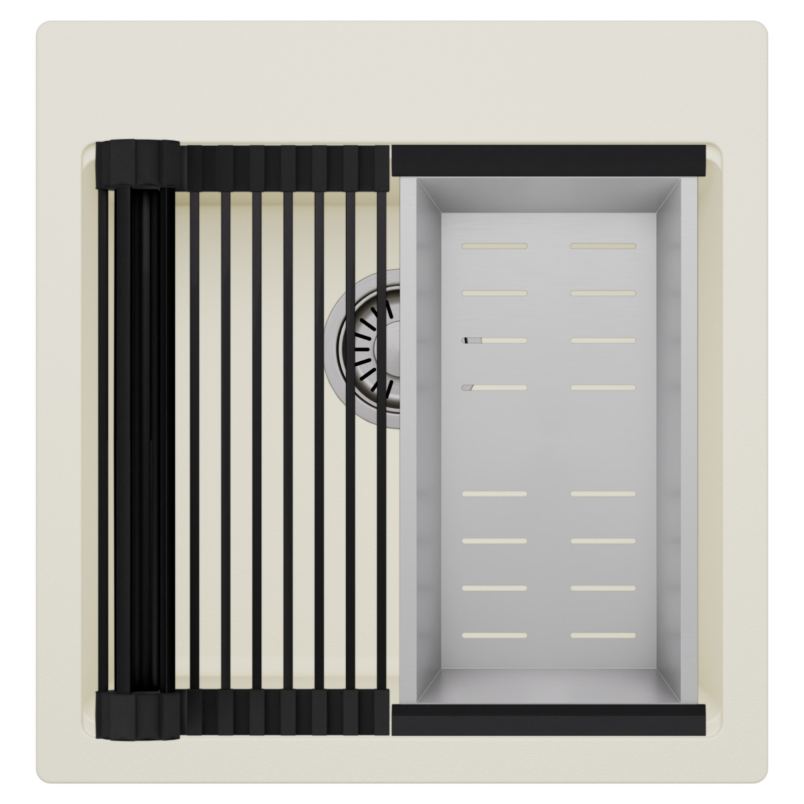 HD Infinity White 48 egymedencés mosogatótálca szett, csepegtetőráccsal és kosárral, tört fehér