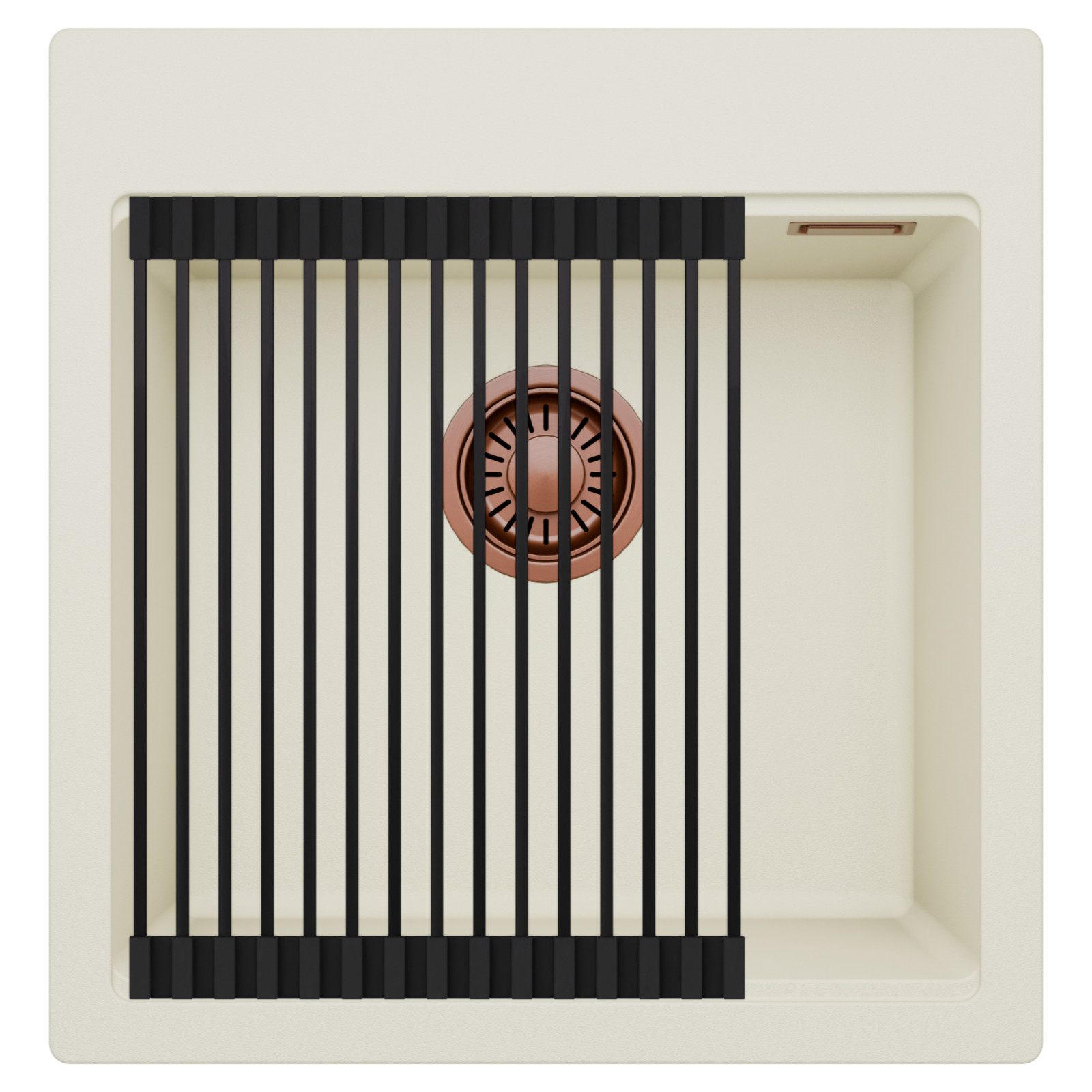 A mosogató prémium minőségű gránit kompozitból készült. Letisztult megjelenése mellett rendkívül praktikus, így bármilyen stílusú konyhába harmonikusan illeszkedik. A strapabíró gránit anyag hosszú távon is megbízható használatot garantál.