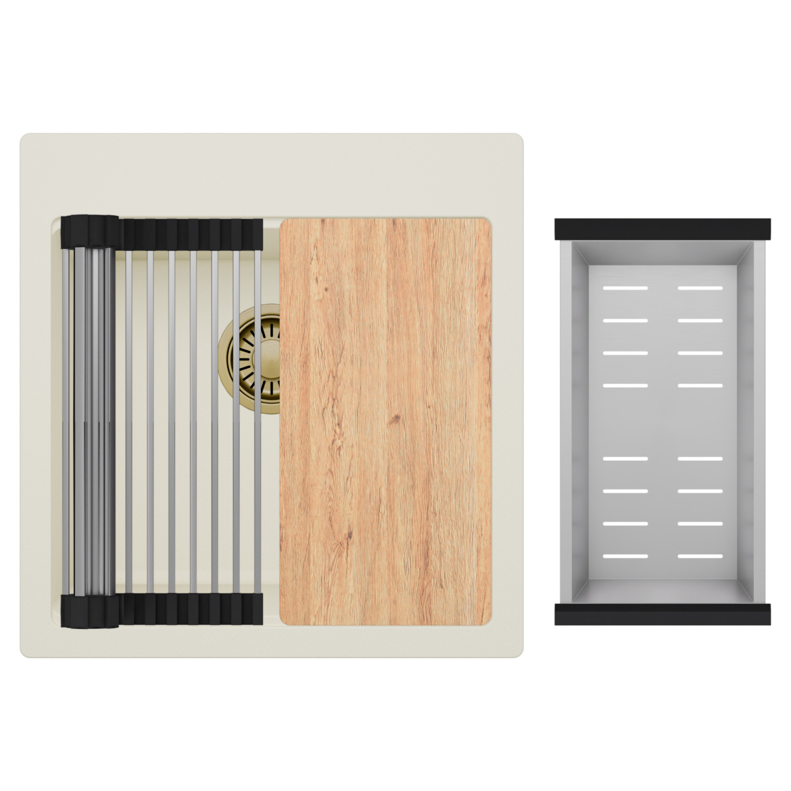 HD Infinity White 48 egymedencés mosogatótálca szett, vágódeszkával, csepegtetőráccsal és kosárral, tört fehér