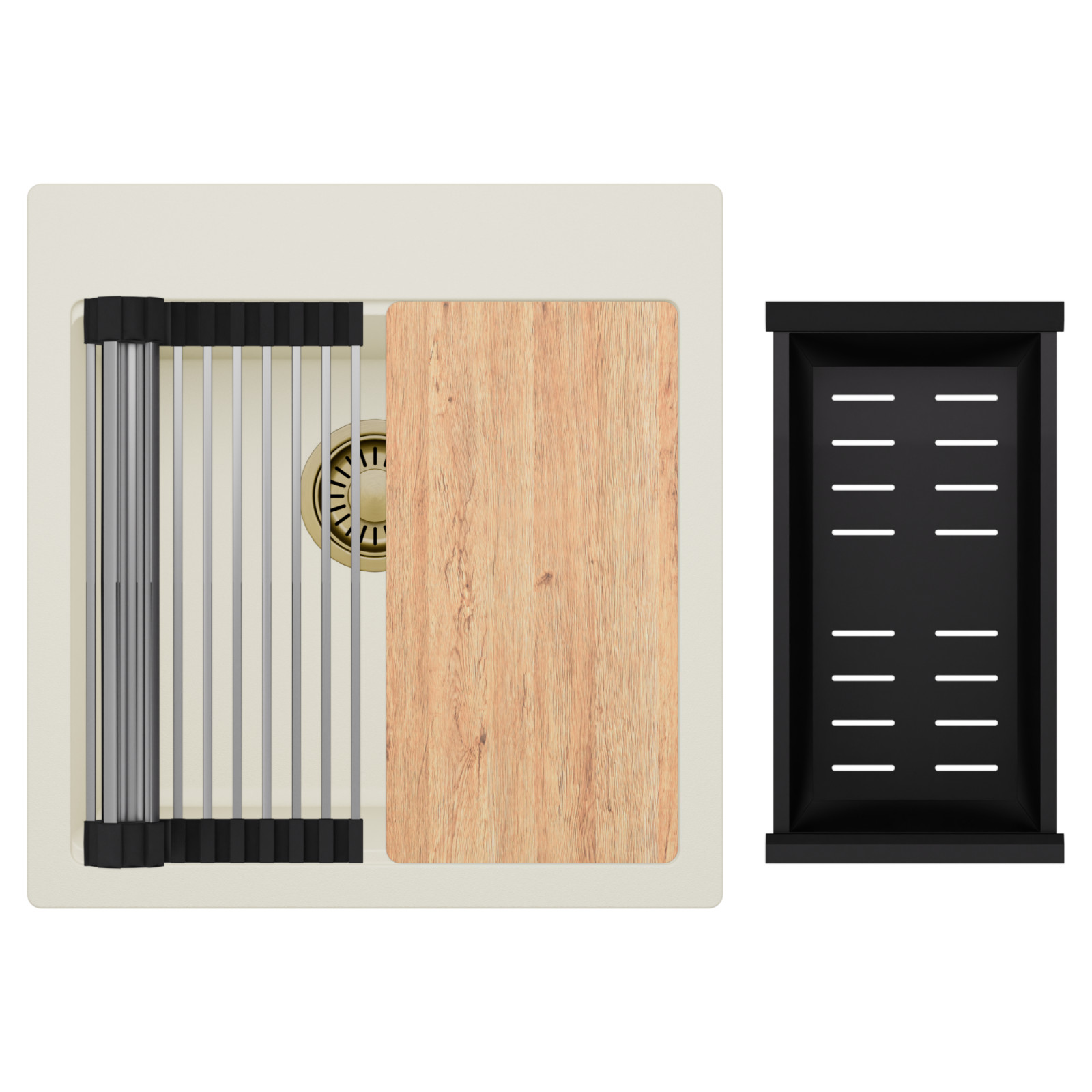 HD Infinity White 48 egymedencés mosogatótálca szett, vágódeszkával, csepegtetőráccsal és kosárral, tört fehér