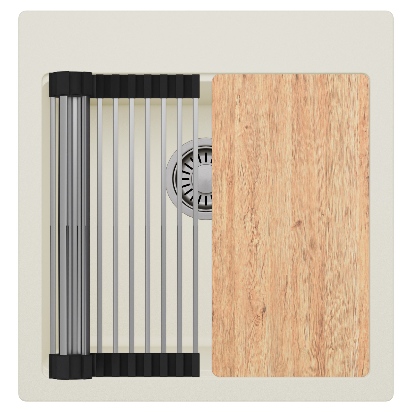 HD Infinity White 48 egymedencés mosogatótálca szett, vágódeszkával és csepegtetőráccsal, tört fehér