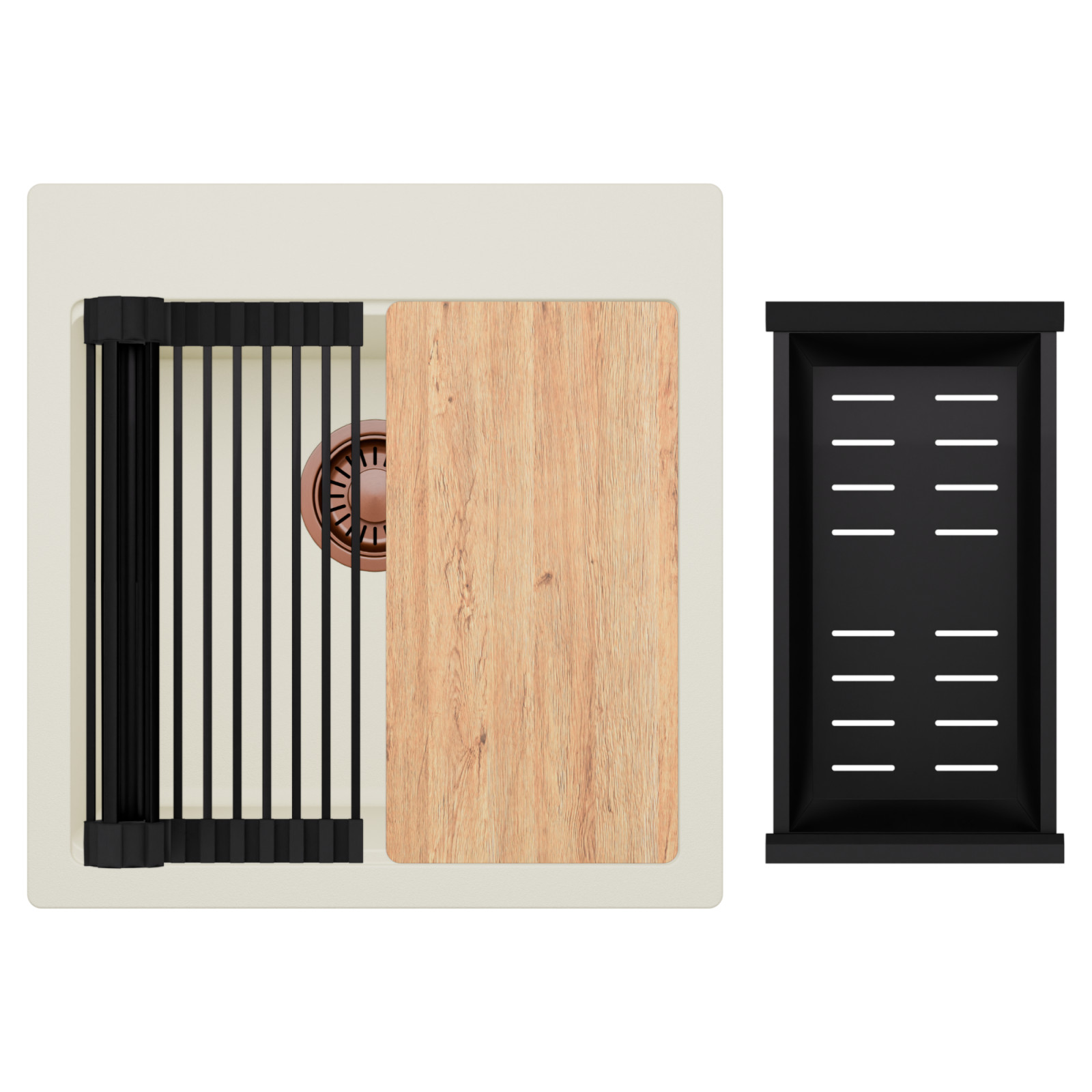HD Infinity White 48 egymedencés mosogatótálca szett, vágódeszkával, csepegtetőráccsal és kosárral, tört fehér
