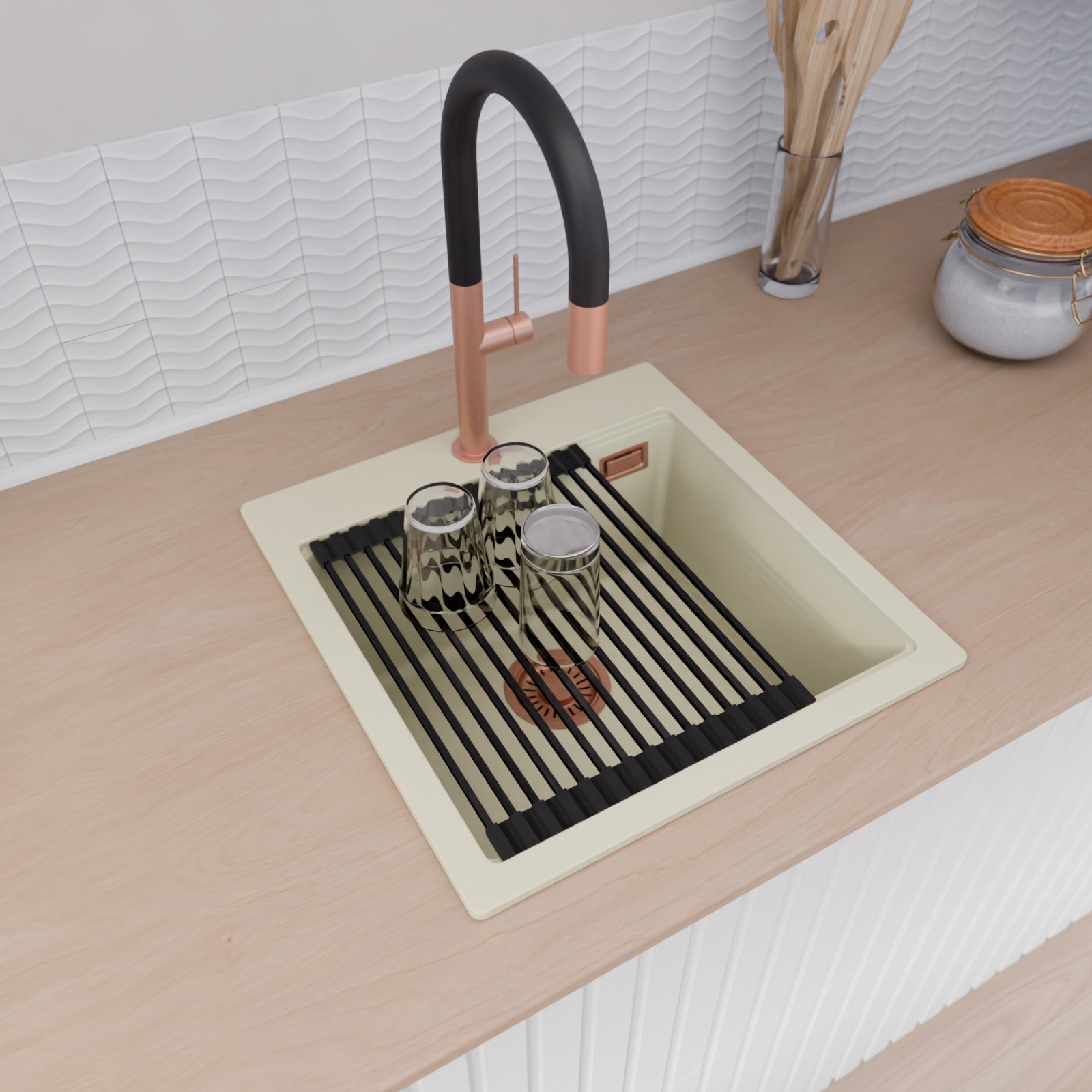 A mosogató prémium minőségű gránit kompozitból készült. Letisztult megjelenése mellett rendkívül praktikus, így bármilyen stílusú konyhába harmonikusan illeszkedik. A strapabíró gránit anyag hosszú távon is megbízható használatot garantál.