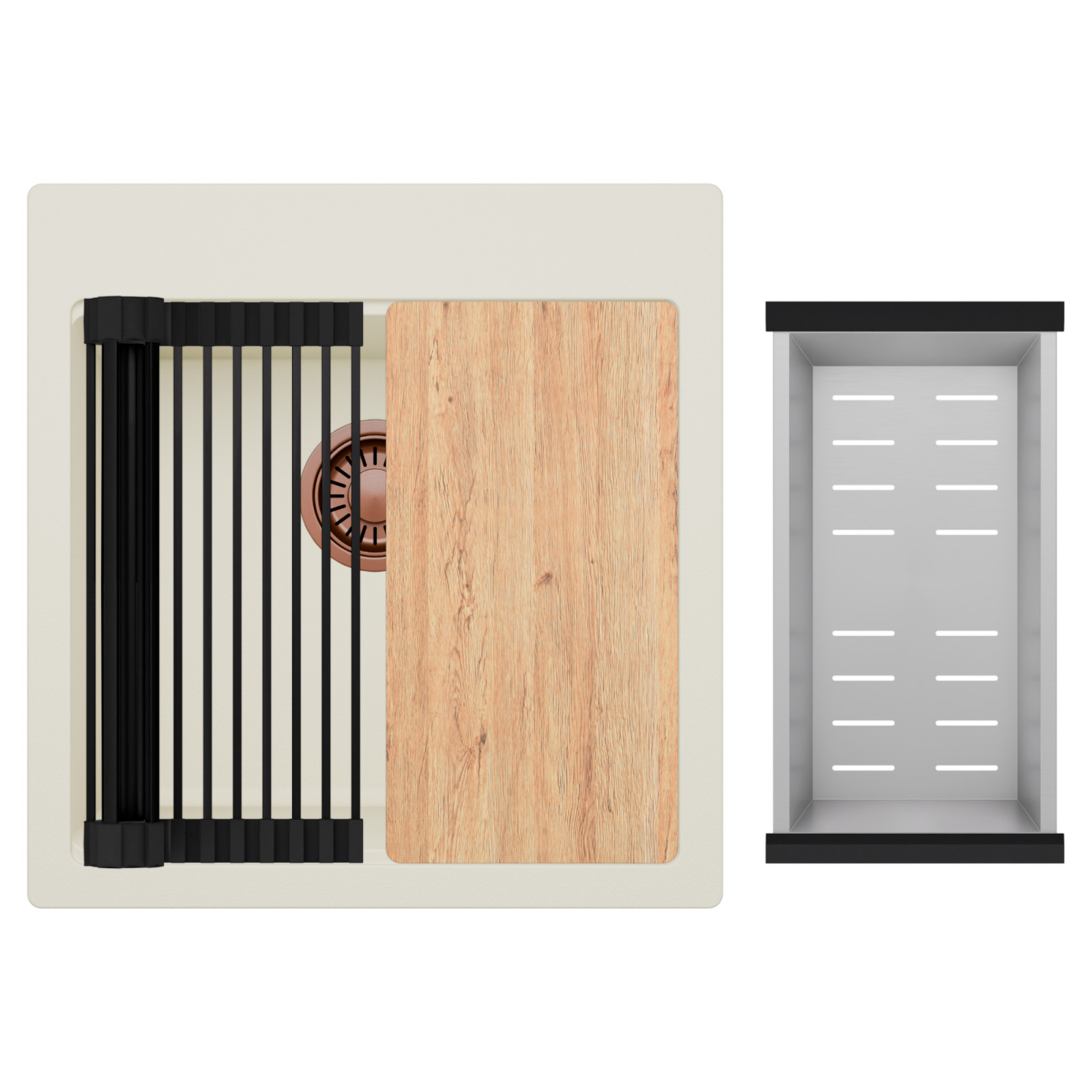 HD Infinity White 48 egymedencés mosogatótálca szett, vágódeszkával, csepegtetőráccsal és kosárral, tört fehér