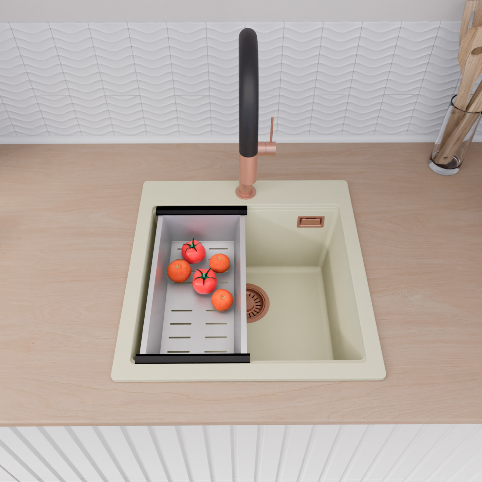 A mosogató prémium minőségű gránit kompozitból készült. Letisztult megjelenése mellett rendkívül praktikus, így bármilyen stílusú konyhába harmonikusan illeszkedik. A strapabíró gránit anyag hosszú távon is megbízható használatot garantál.