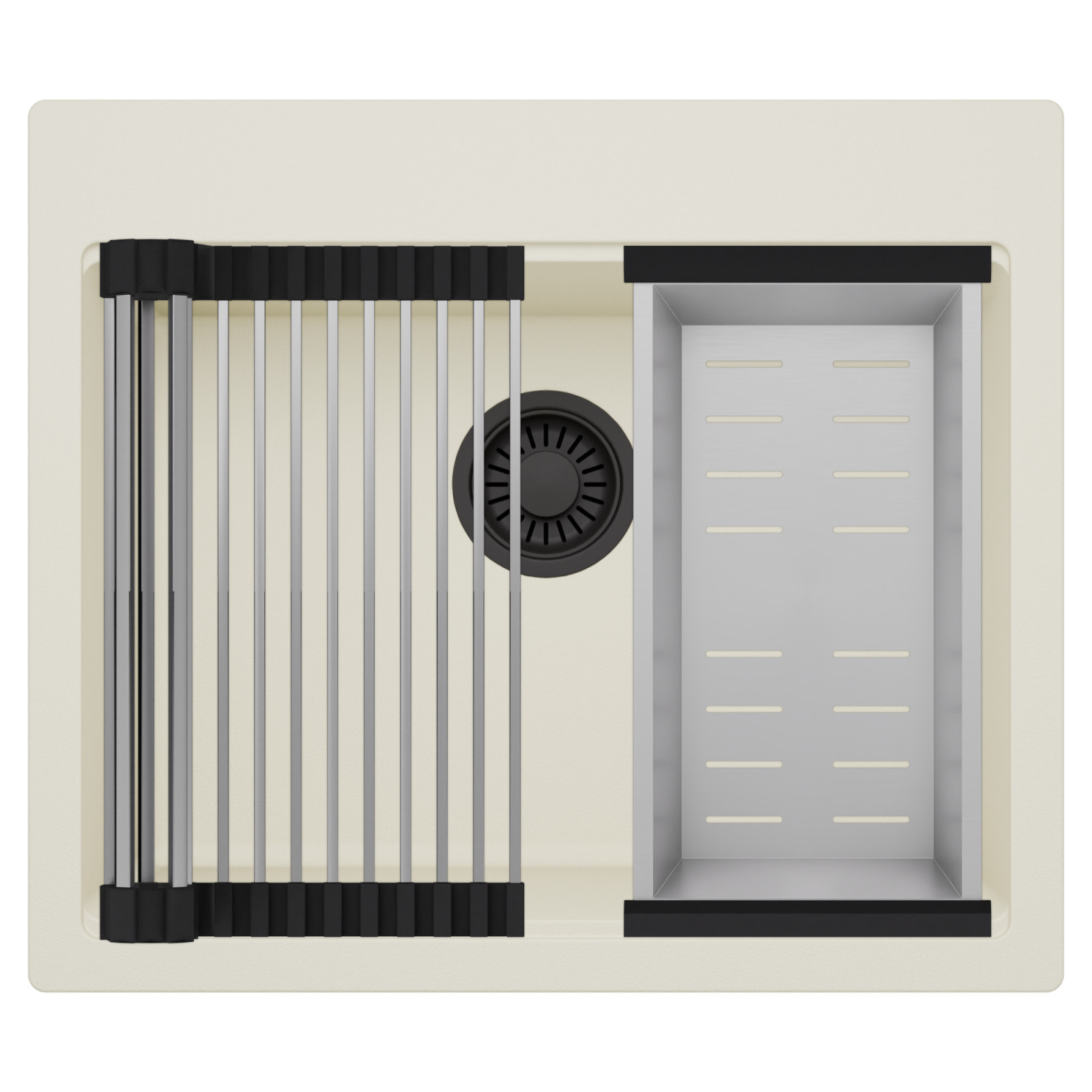 HD Infinity White 58 egymedencés mosogatótálca szett, csepegtetőráccsal és kosárral, tört fehér