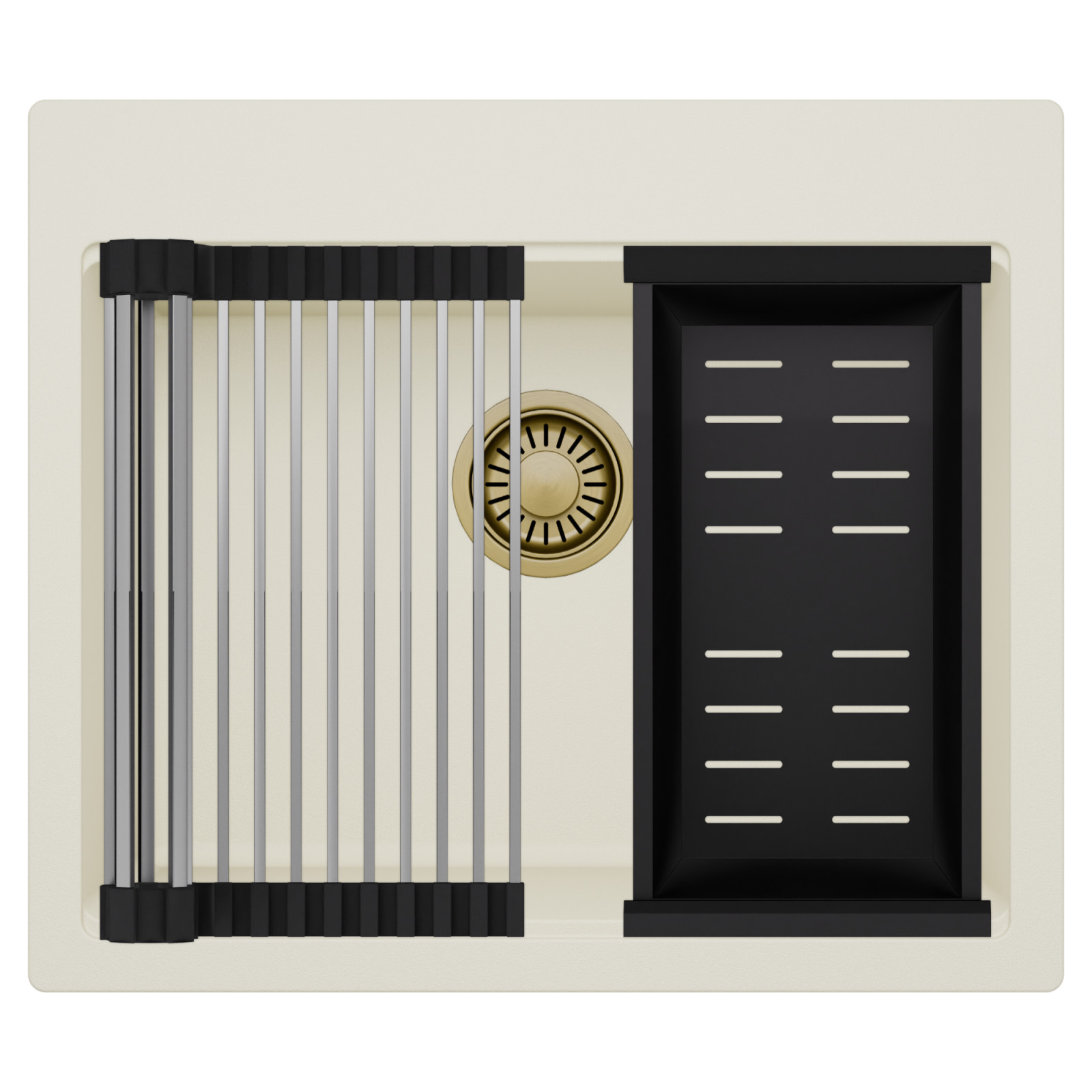 HD Infinity White 58 egymedencés mosogatótálca szett, csepegtetőráccsal és kosárral, tört fehér