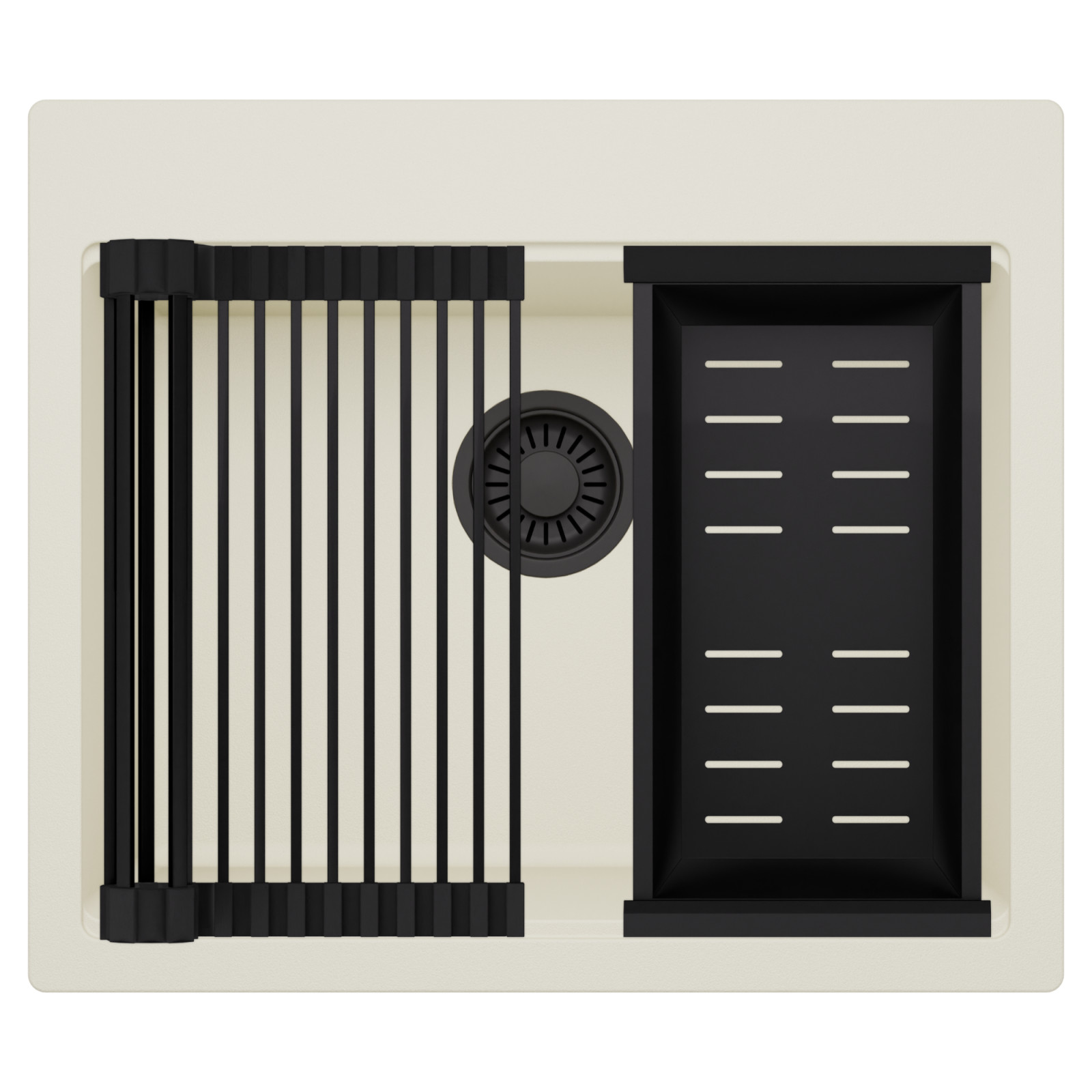 HD Infinity White 58 egymedencés mosogatótálca szett, csepegtetőráccsal és kosárral, tört fehér