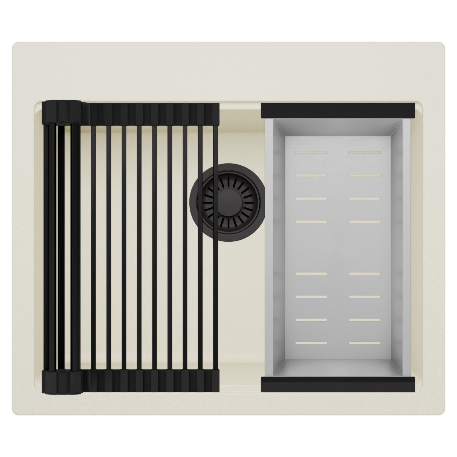 HD Infinity White 58 egymedencés mosogatótálca szett, csepegtetőráccsal és kosárral, tört fehér