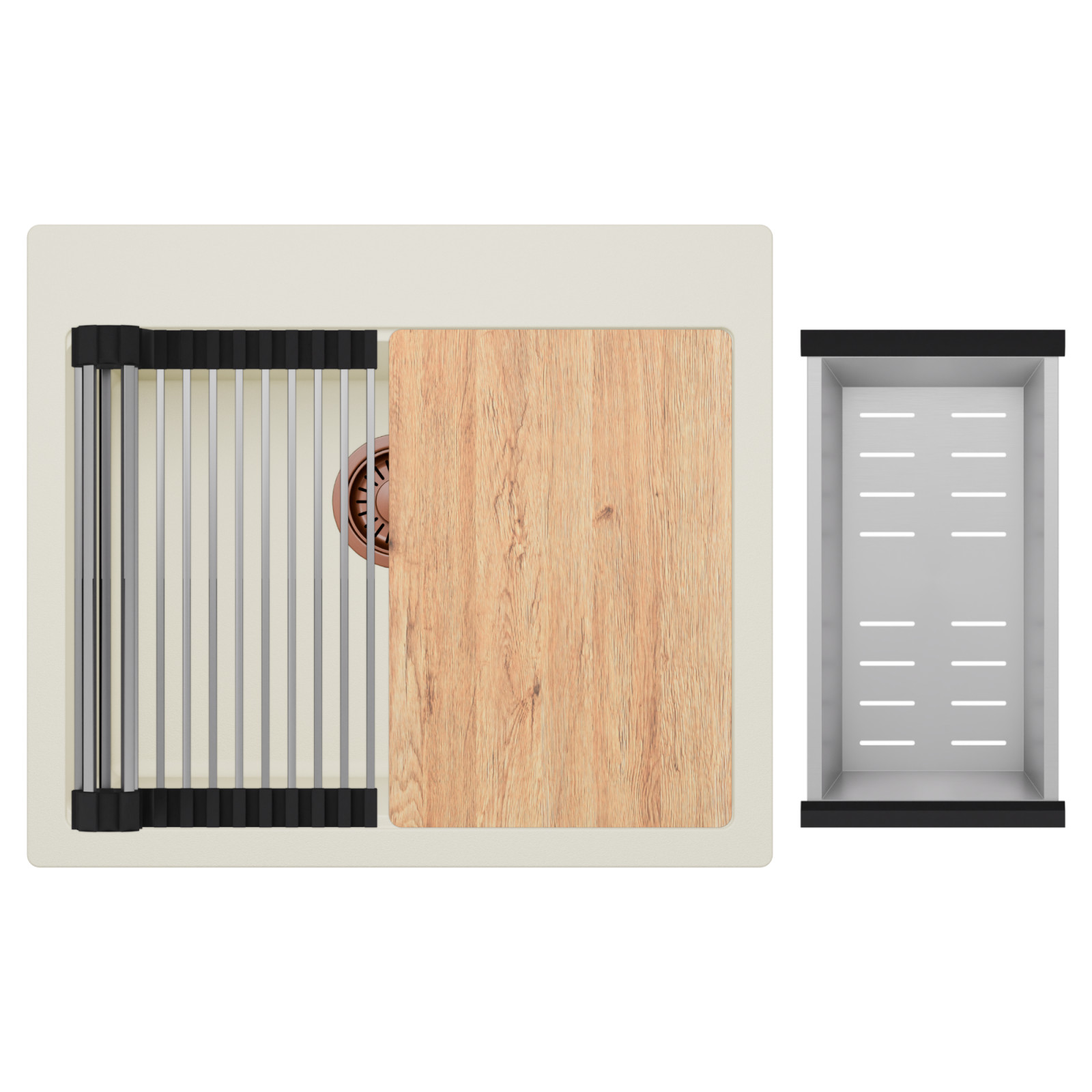 HD Infinity White 58 egymedencés mosogatótálca szett, vágódeszkával, csepegtetőráccsal és kosárral, tört fehér