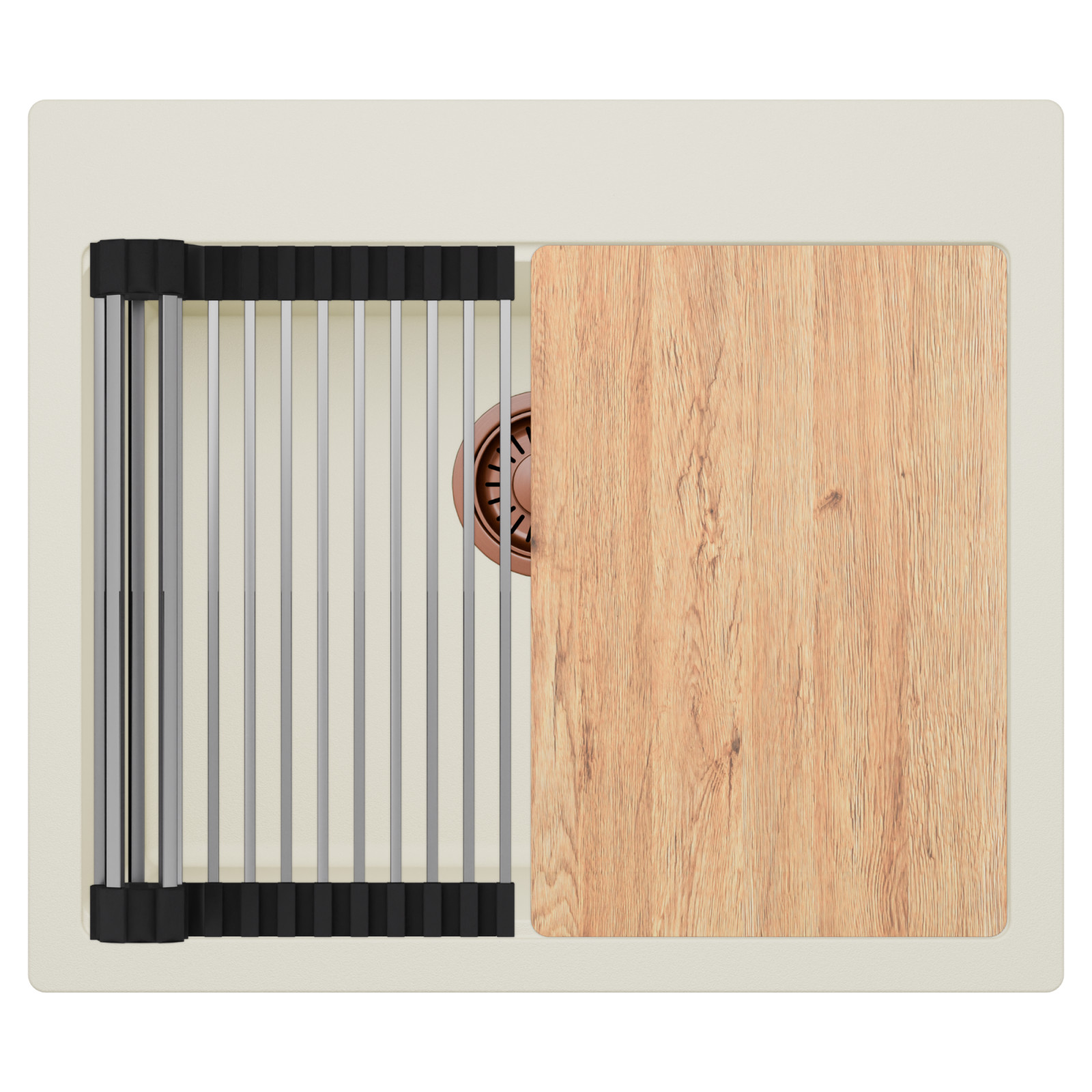 HD Infinity White 58 egymedencés mosogatótálca szett, vágódeszkával és csepegtetőráccsal, tört fehér