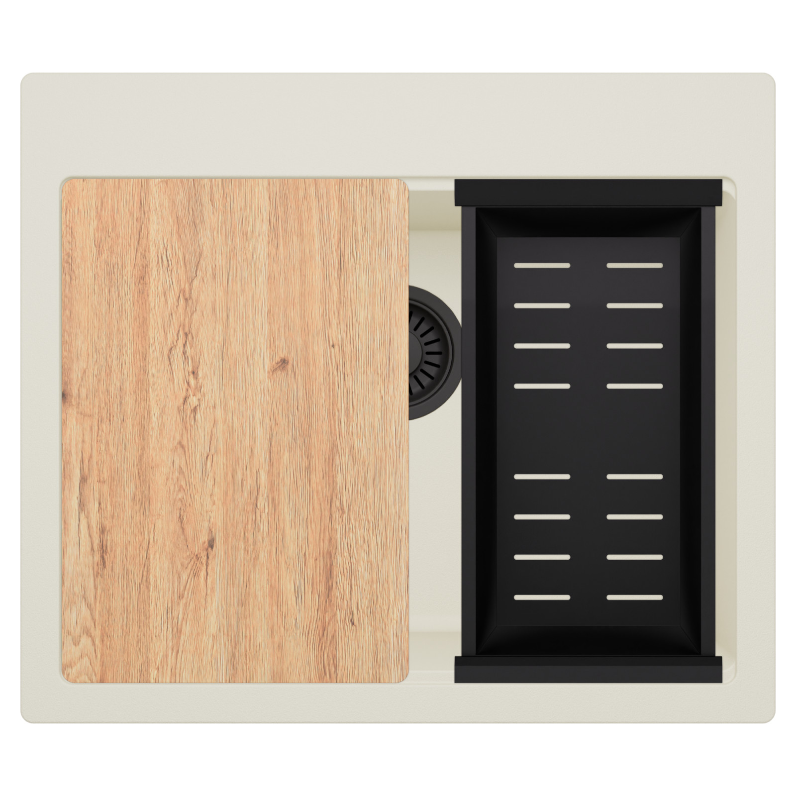 HD Infinity White 58 egymedencés mosogatótálca szett, vágódeszkával és csepegtetőkosárral, tört fehér