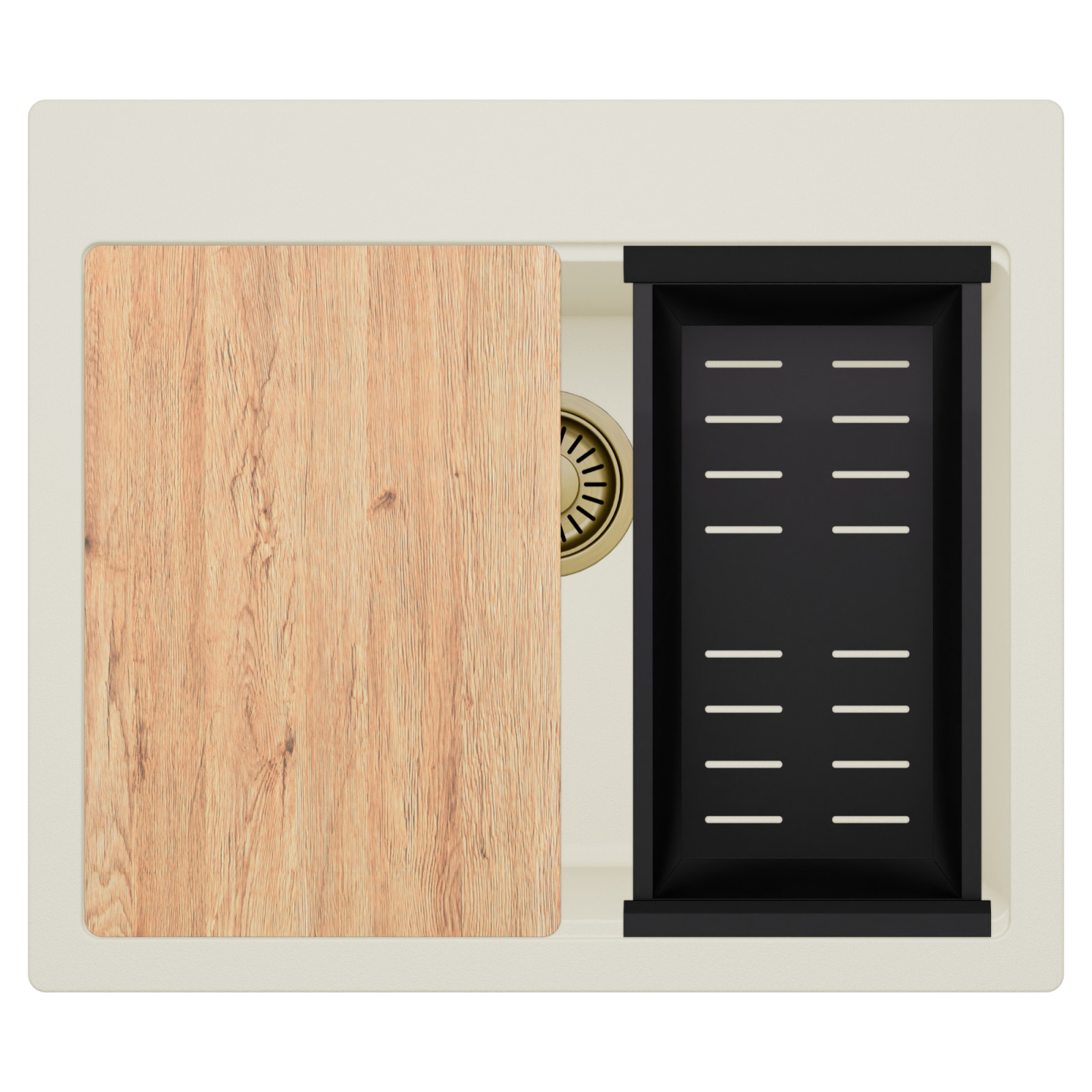 HD Infinity White 58 egymedencés mosogatótálca szett, vágódeszkával és csepegtetőkosárral, tört fehér
