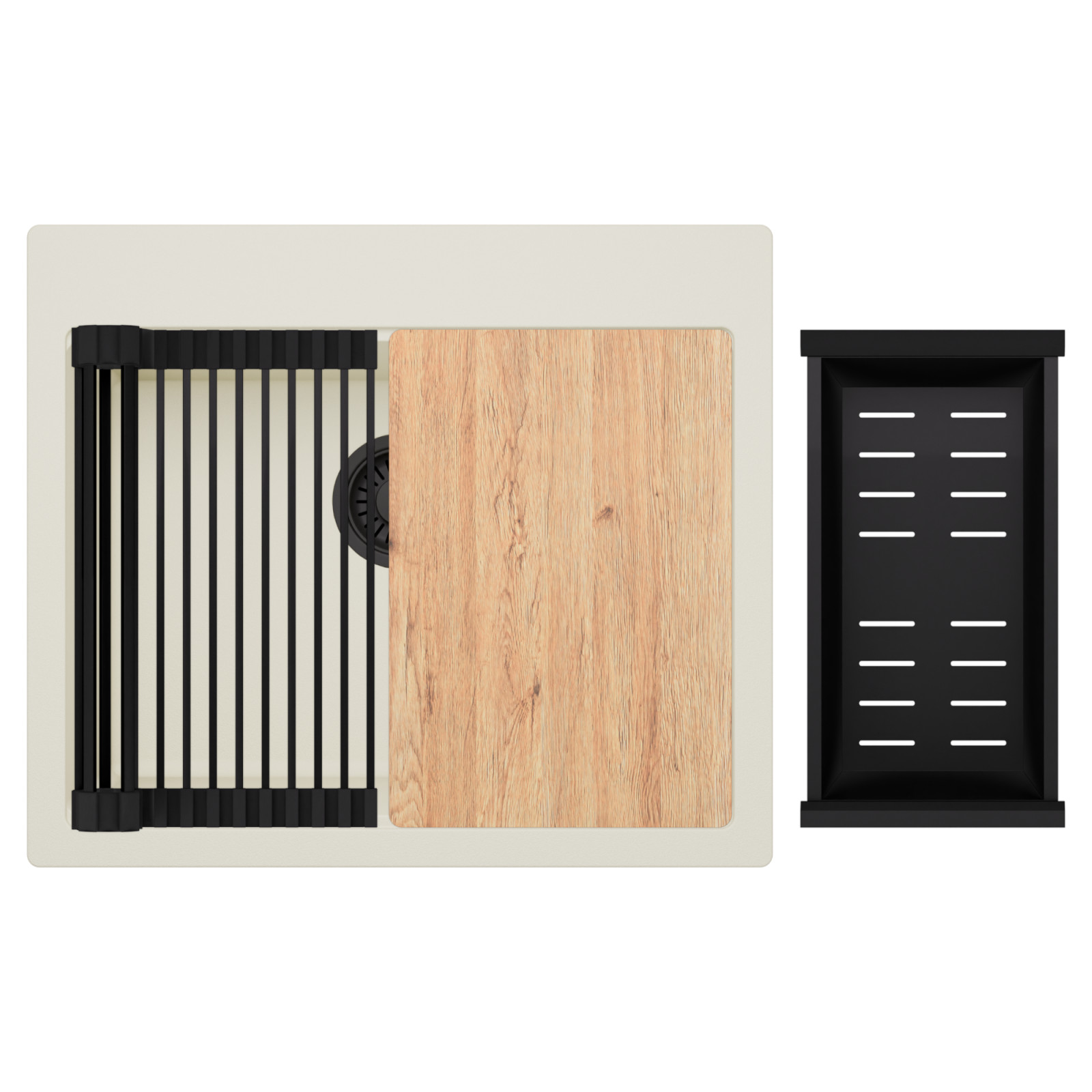 HD Infinity White 58 egymedencés mosogatótálca szett, vágódeszkával, csepegtetőráccsal és kosárral, tört fehér