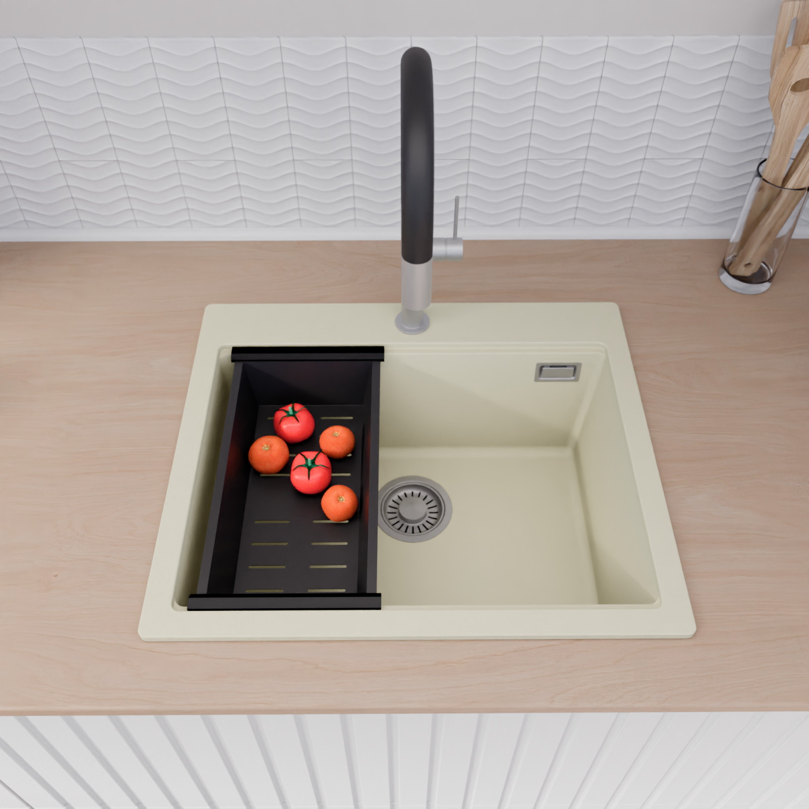 A mosogató prémium minőségű gránit kompozitból készült. Letisztult megjelenése mellett rendkívül praktikus, így bármilyen stílusú konyhába harmonikusan illeszkedik. A strapabíró gránit anyag hosszú távon is megbízható használatot garantál.