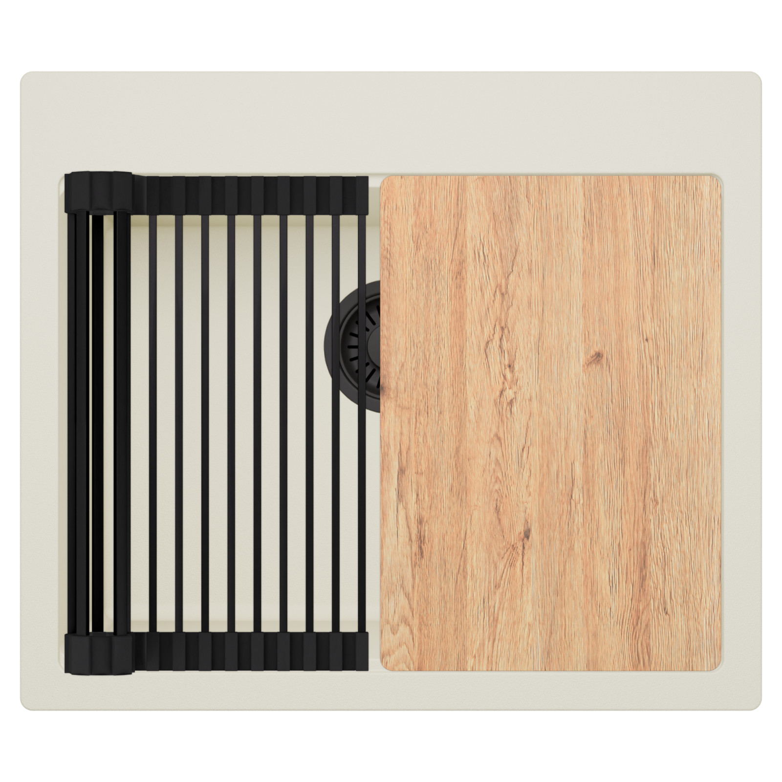 HD Infinity White 58 egymedencés mosogatótálca szett, vágódeszkával és csepegtetőráccsal, tört fehér